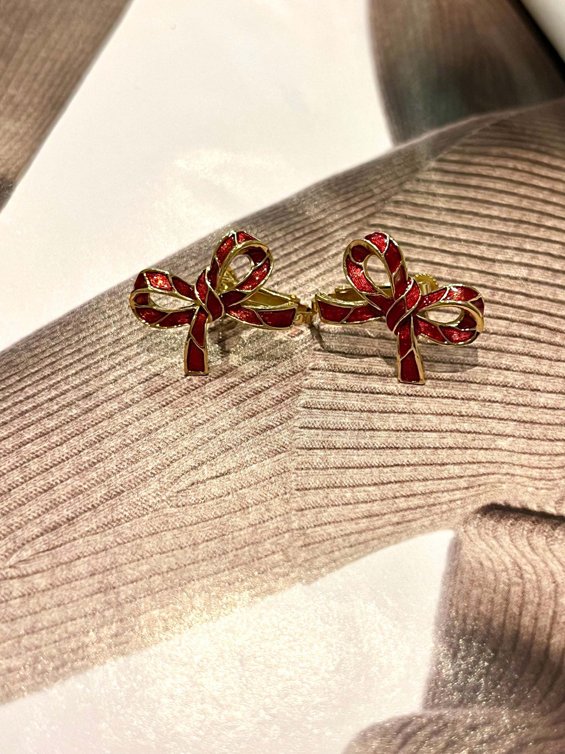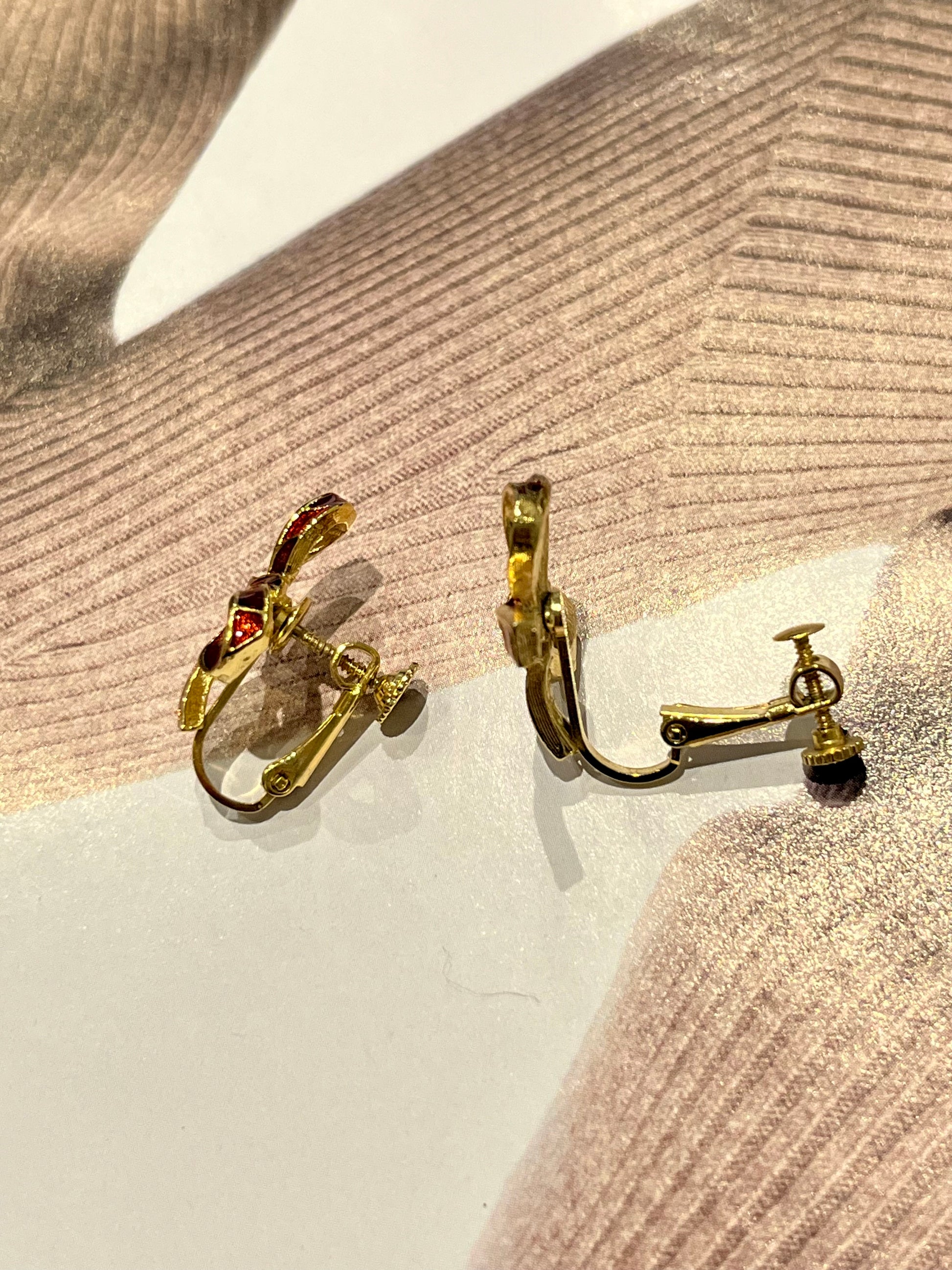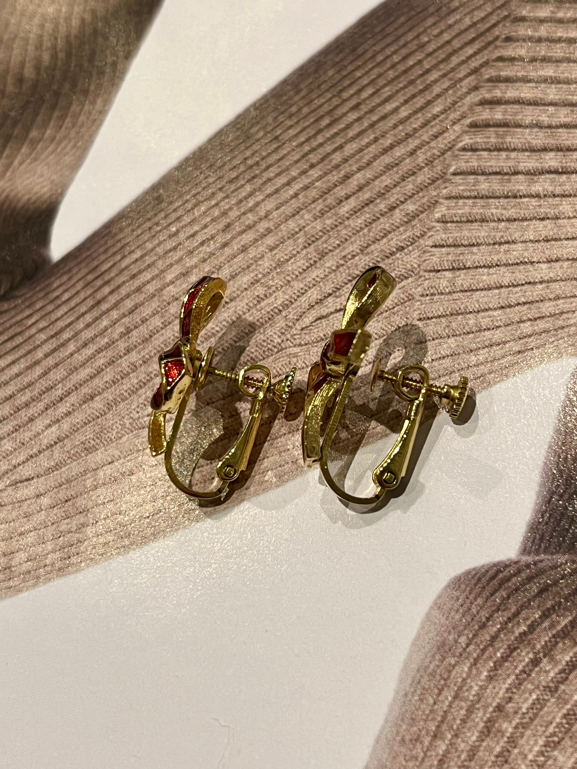 EN/ Clips in the shape of adorable little red and gold bows. The design is reminiscent of the holiday season, they are as chic and festive as they are adorable. The clip clasp is very ingenious, it can be tightened or loosened at will with a system that screws and unscrews.