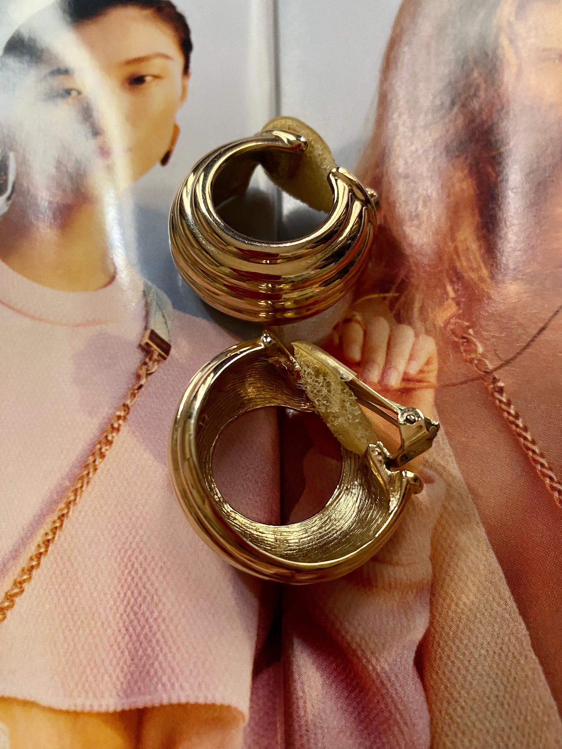 Clips créoles en plaqué or. La mousse protège le lobe pour les oreilles sensibles mais peut s’enlever. Accroche très bien l’oreille et sont légères.