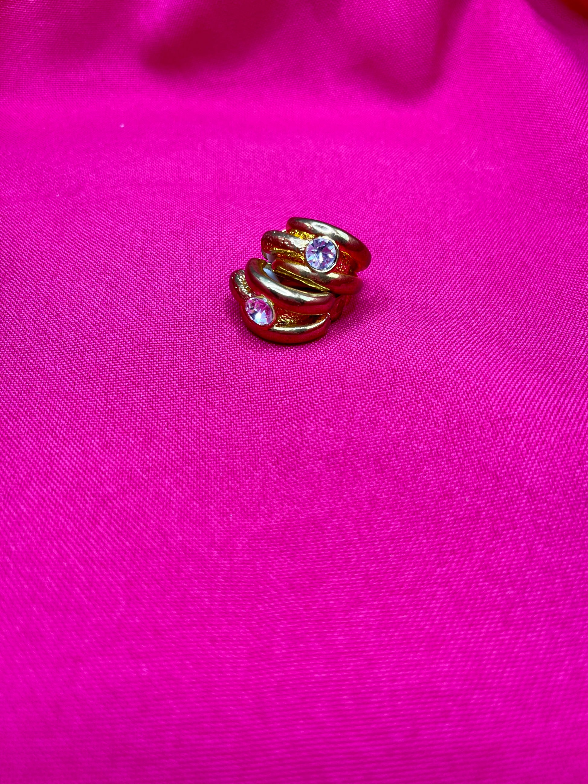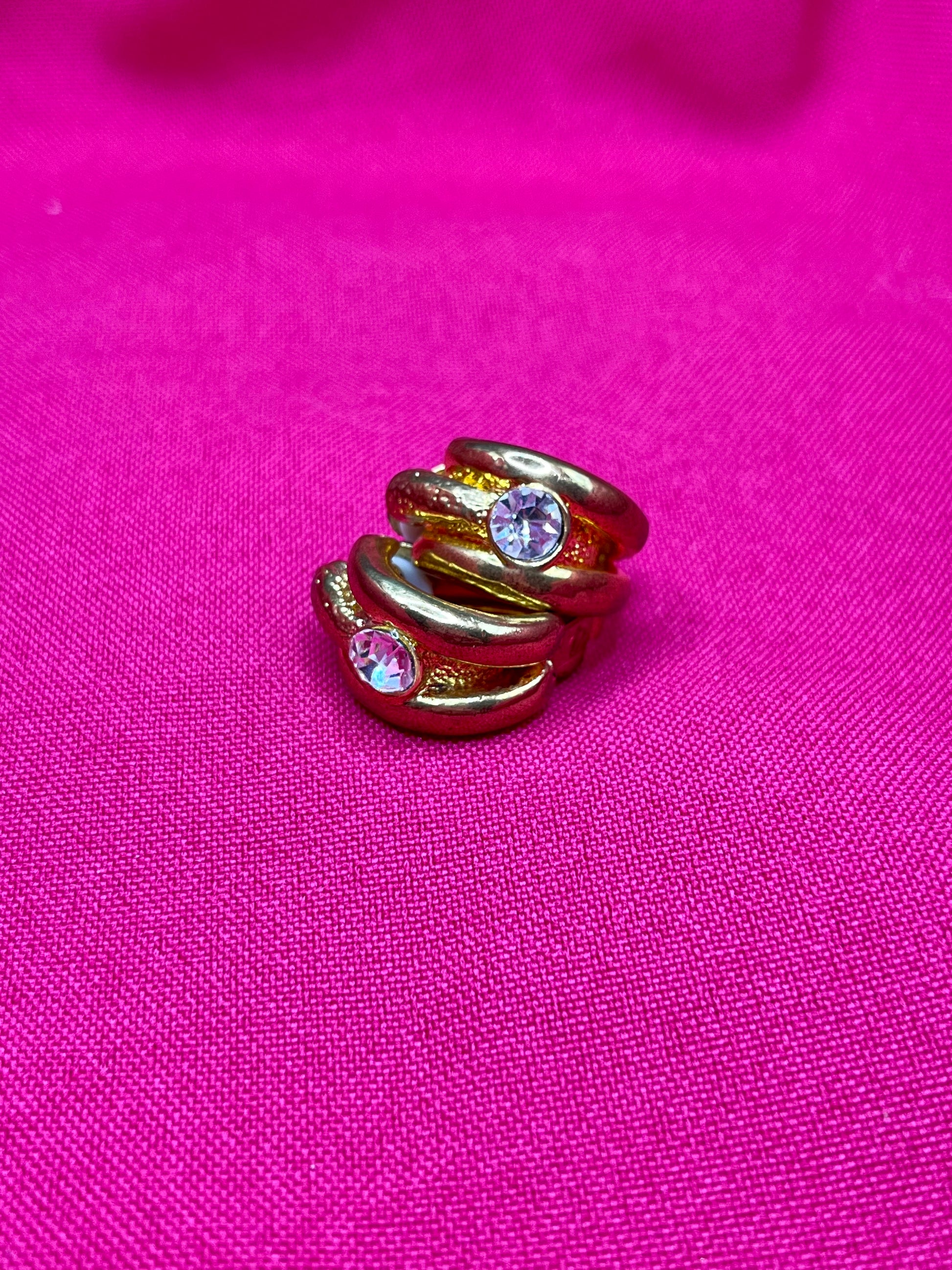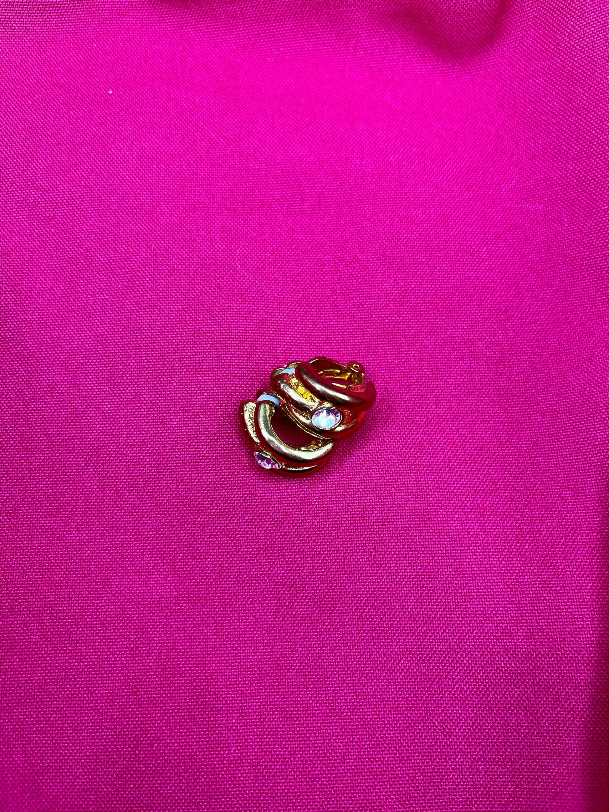 FR/ Élégante paire de créoles en clip, avec un mélange d’or brillant et matte effet martelé qui donne un immédiatement un côté couture à cette pièce. Légères et agréables à porter.
