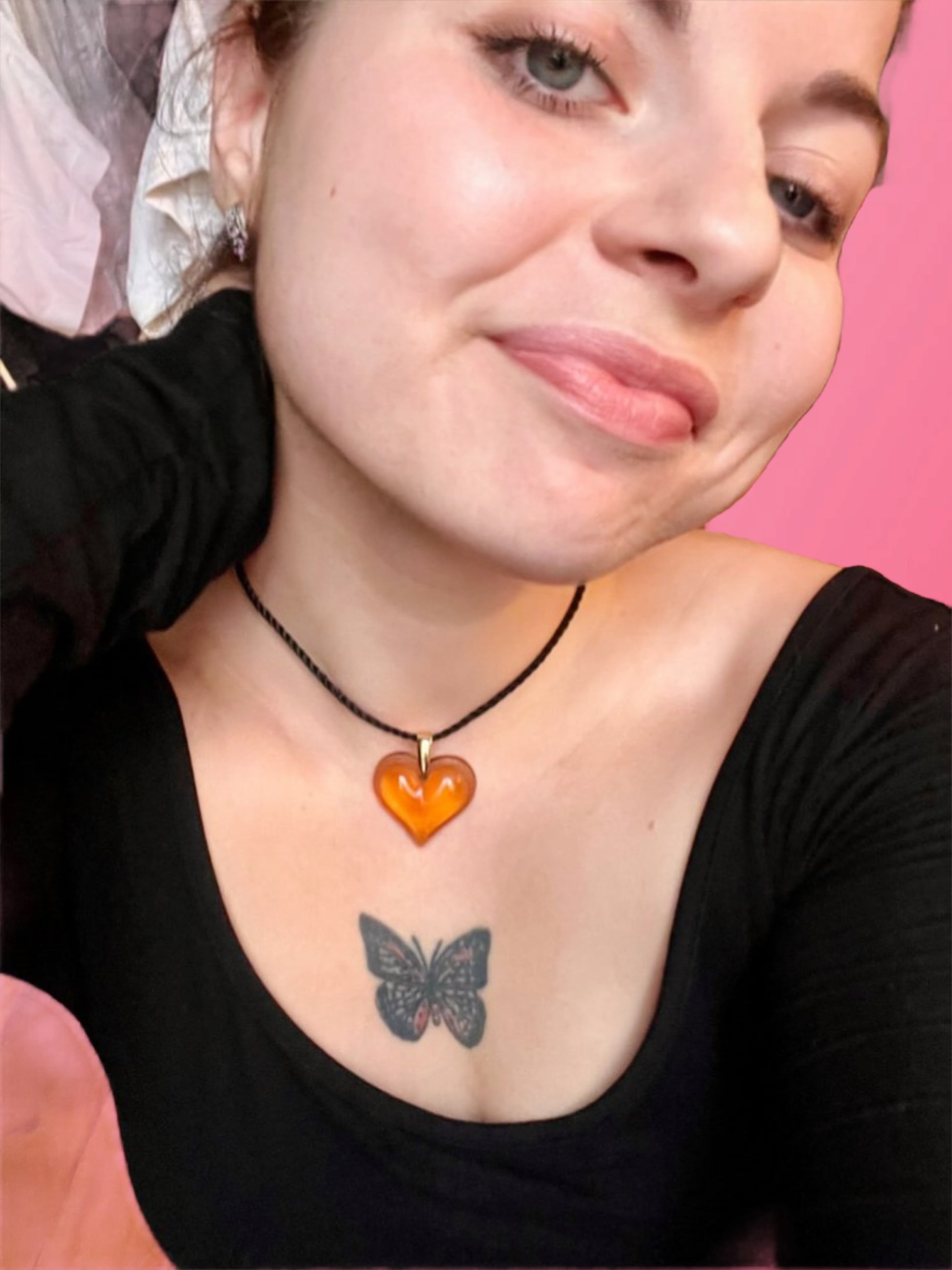FR/ Pièce d’exception signée Lalique en cristal ambré de leur célèbre collection « Amoureuse beaucoup ». Le coeur est signé par gravure ainsi que la bélière qui est en plaqué or. Le cordon est d’origine.
