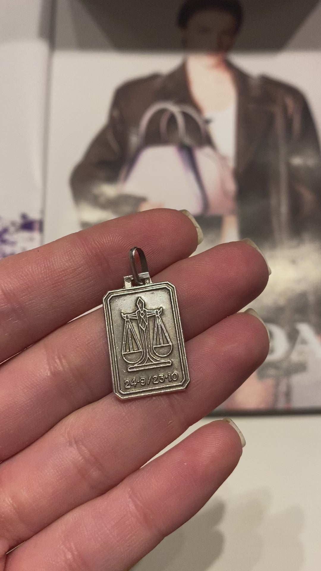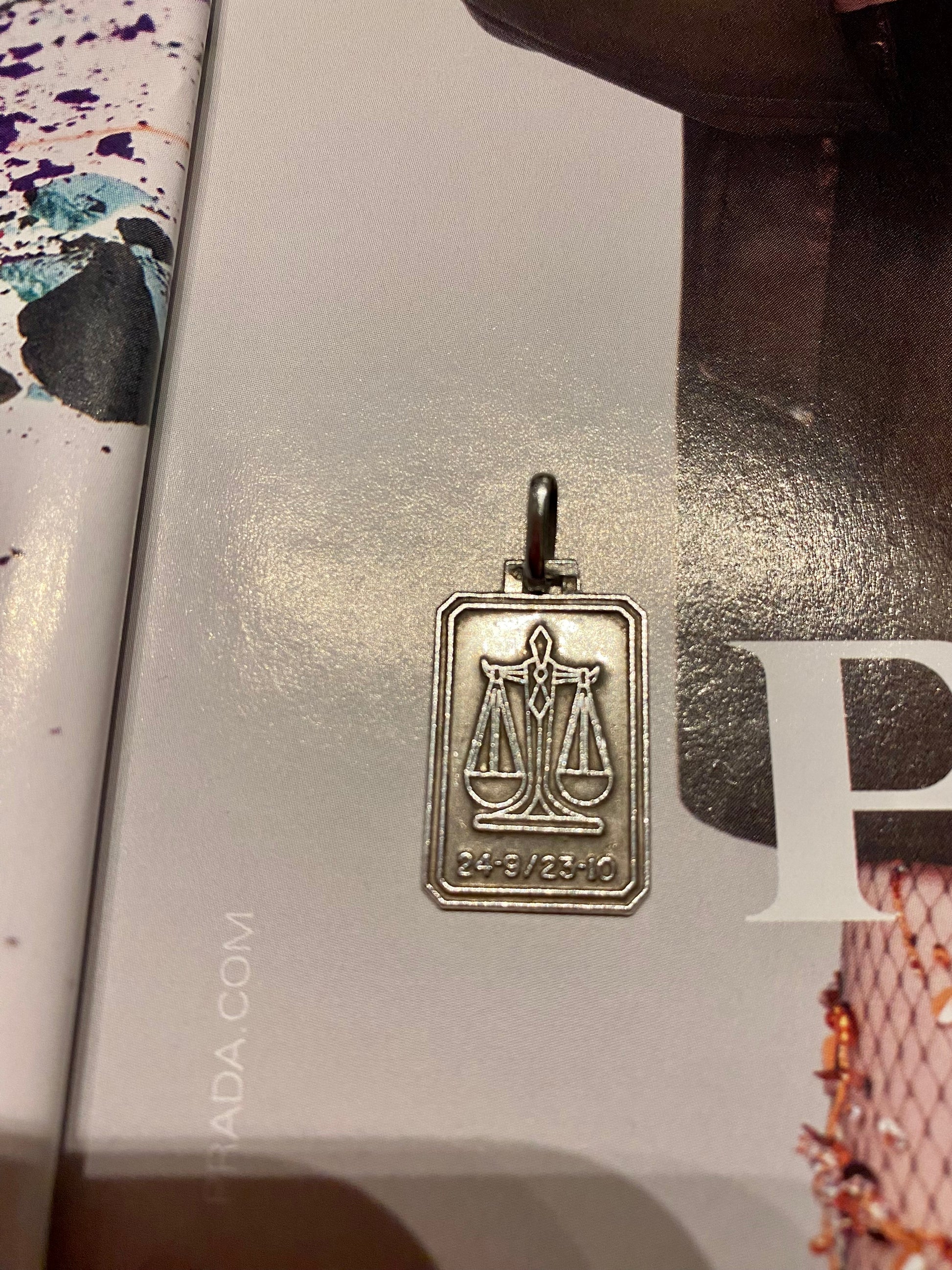 Silver libra zodiac sign pendant.