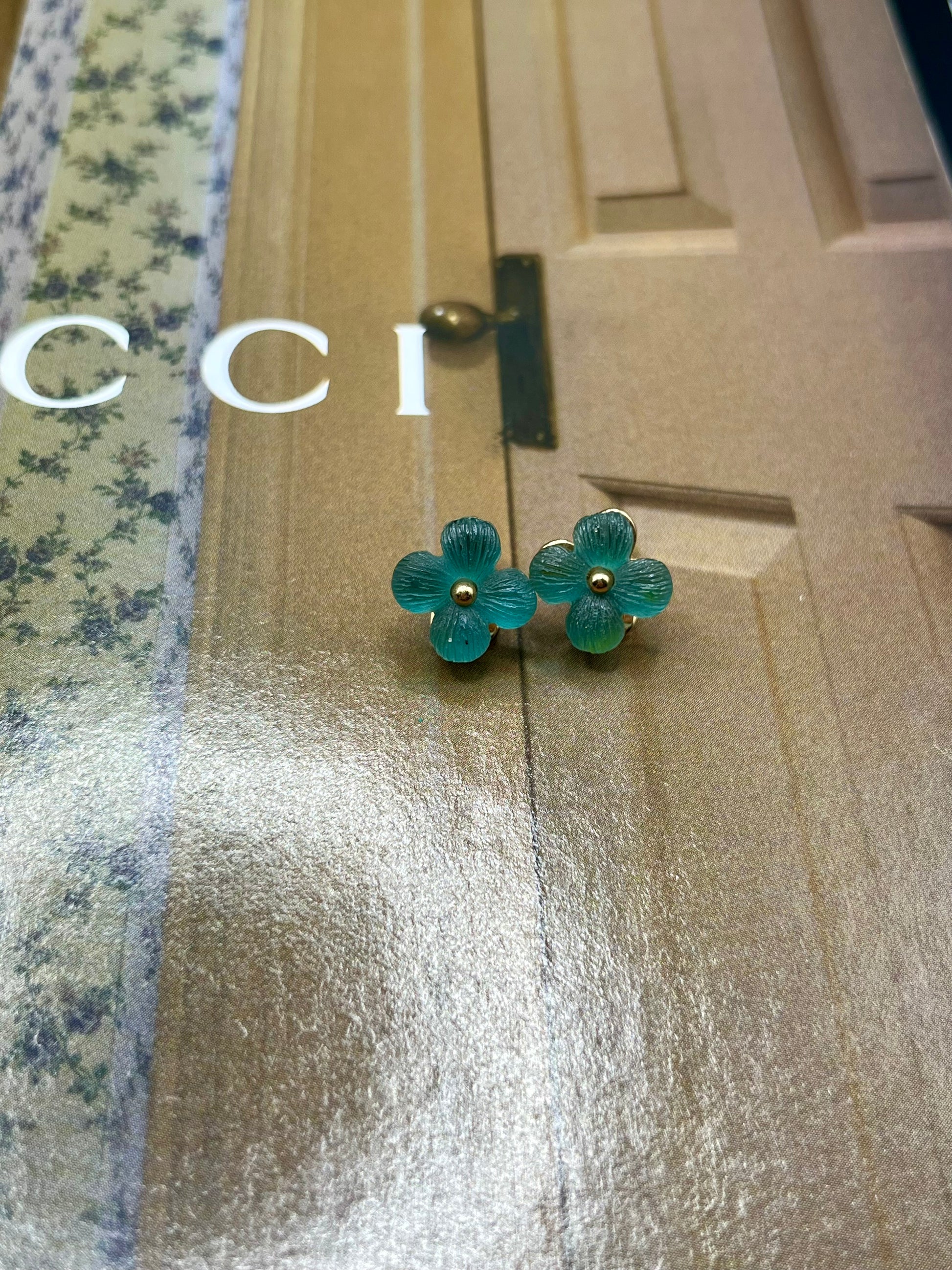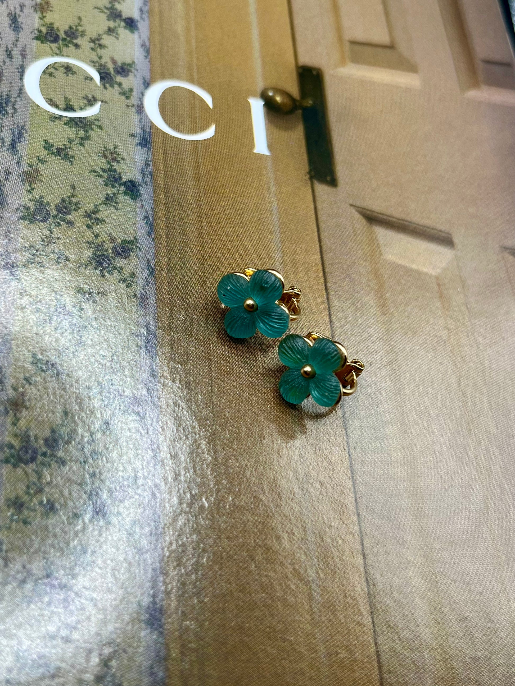 FR/ Ce sont les mini clips les plus adorables que j’ai pu voir dans ma vie. Ces petites fleurs en pâte de verre d’un joli vert sont à la fois élégante, adorables et originales. Une paire dont on ne peut pas se lasser. Extrement legeres, elles sont très agréables à porter.