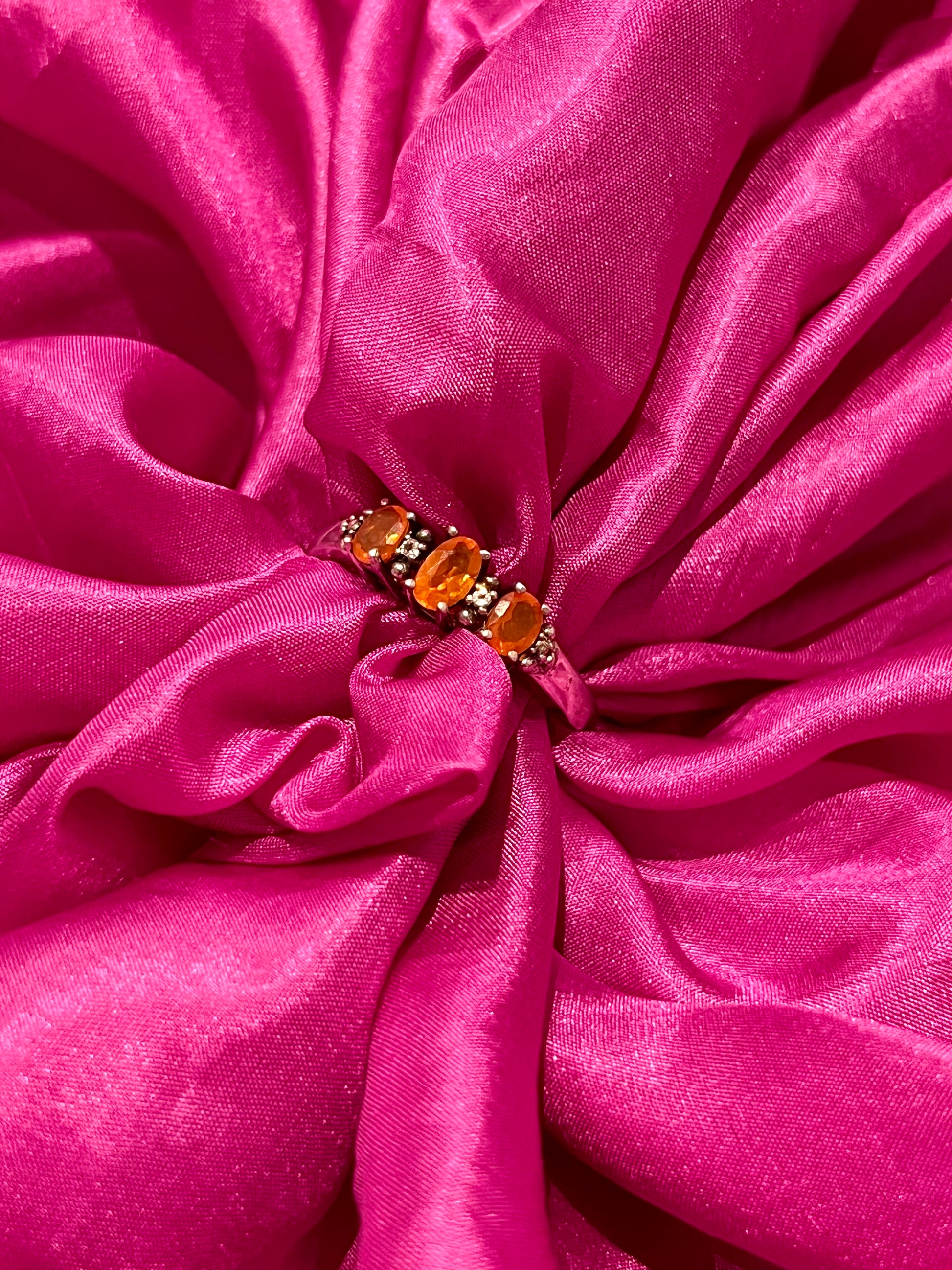 FR/ Pièce fine et élégante en argent 925 avec des cristaux d’une couleur peu commune. Ce orange associé à l’argent apporte une belle luminosité.