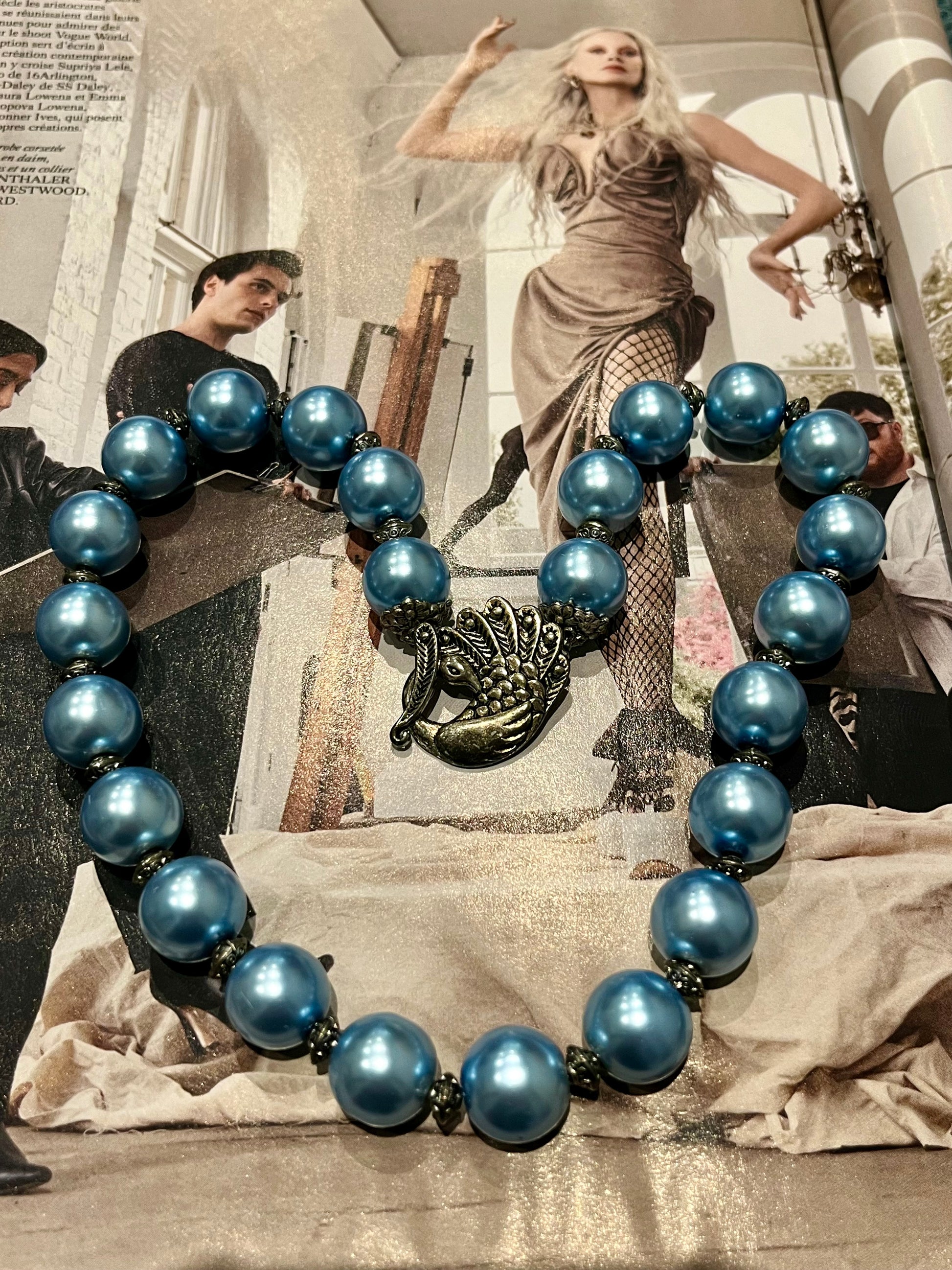 FR/ Sublime collier de perles synthétiques des années 1930 avec un fermoir d’une beauté incroyable qui représente un Paon. Un travail délicat et original. Une très belle pièce à avoir dans sa collection.