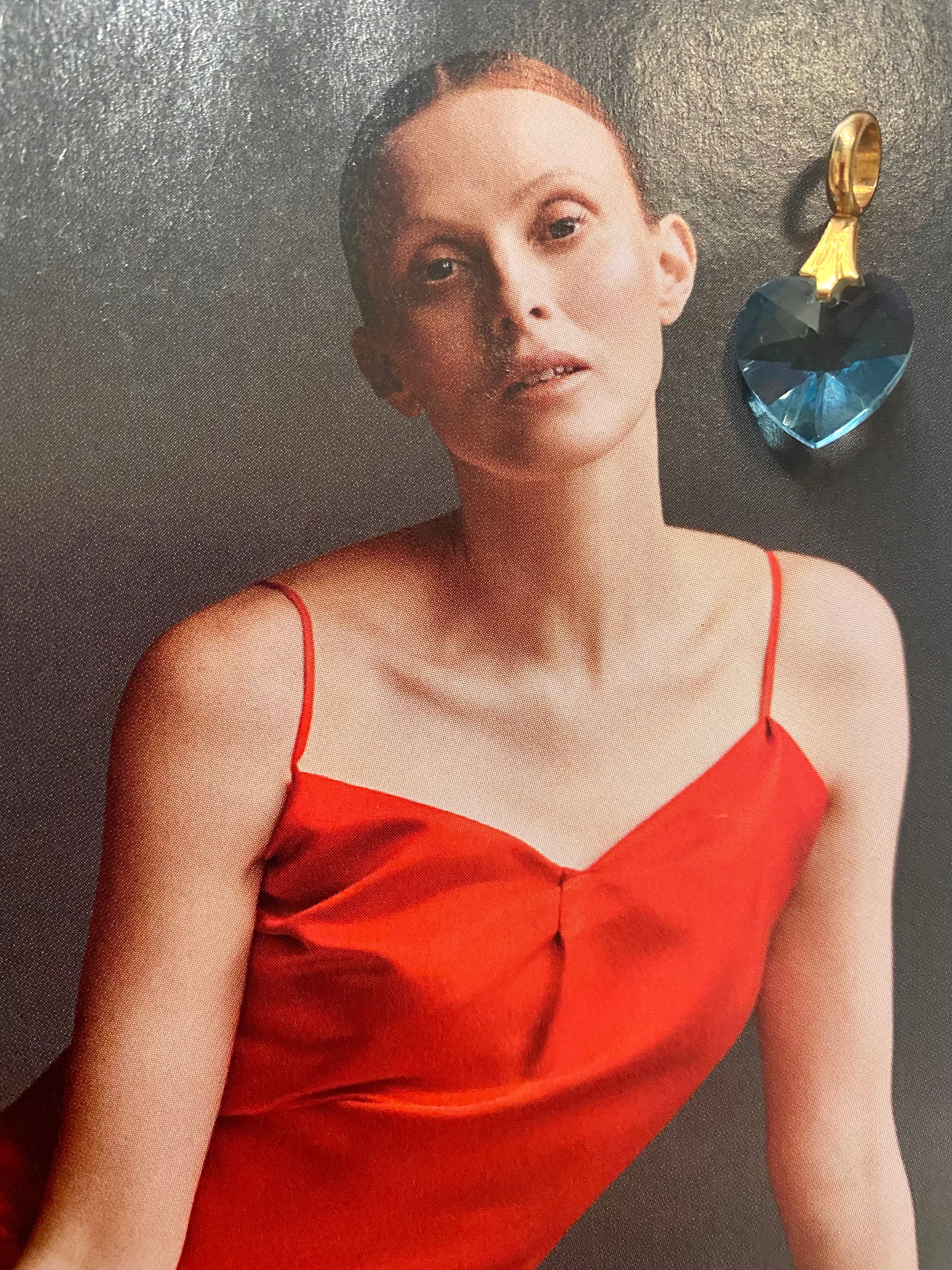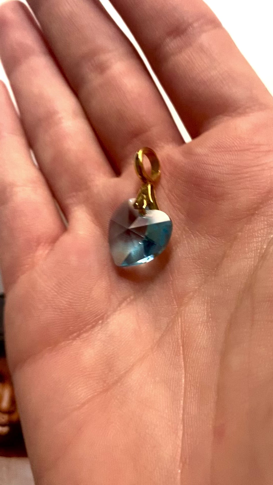 Petit pendentif vintage en cristal en forme de coeur bleu.
