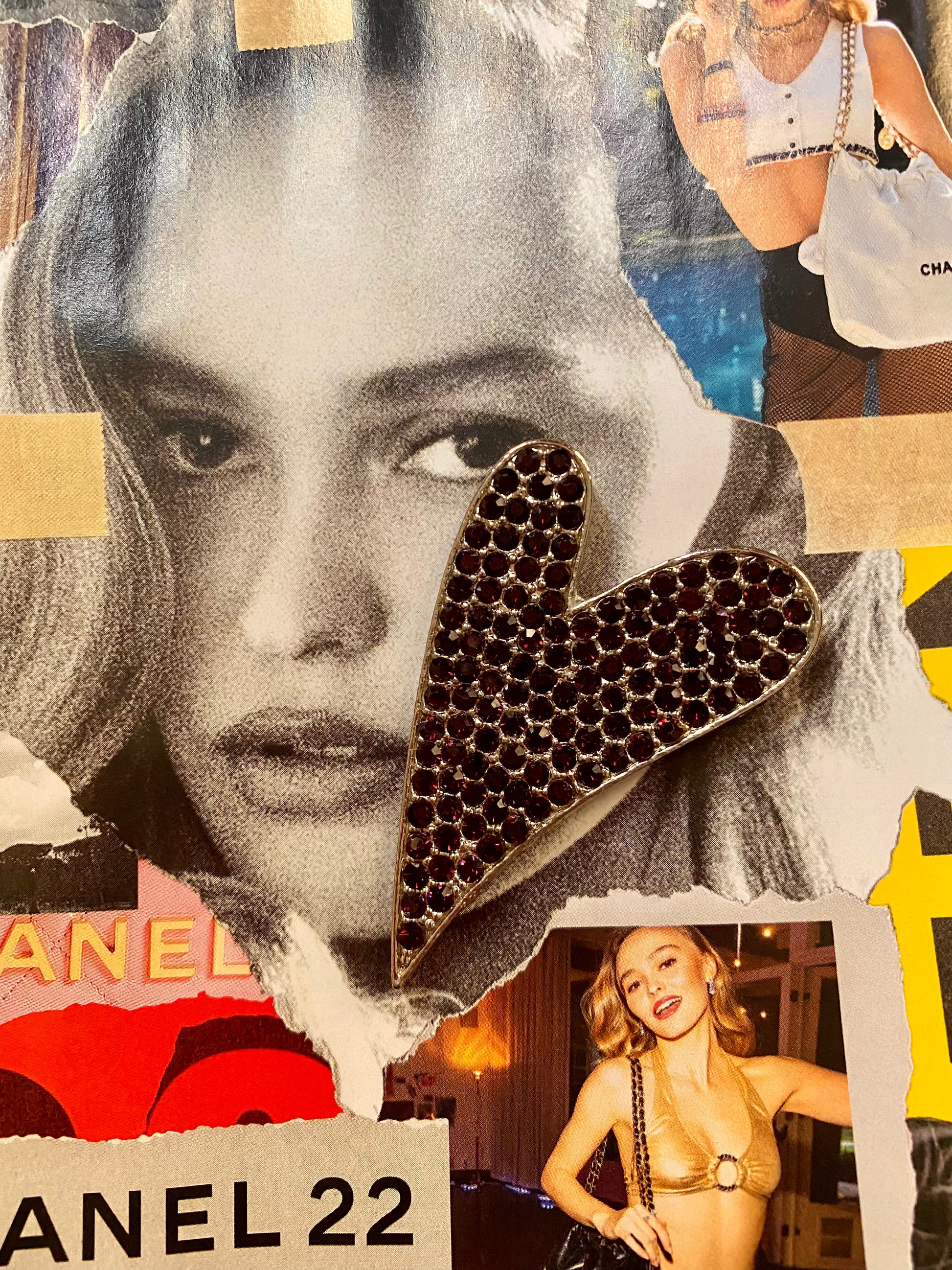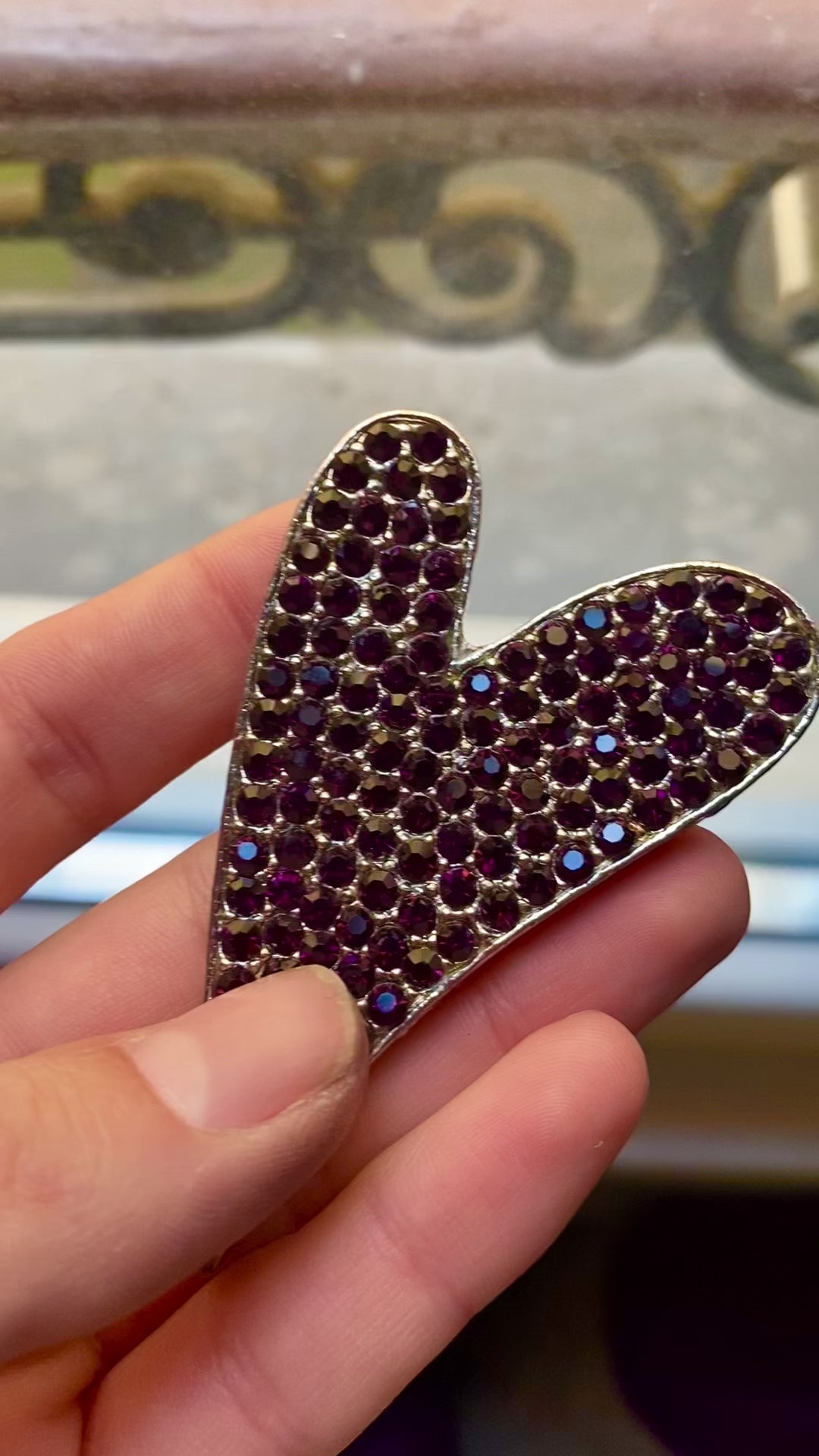 Pendentif en forme de coeur en plaqué argent serti de zircons violets.