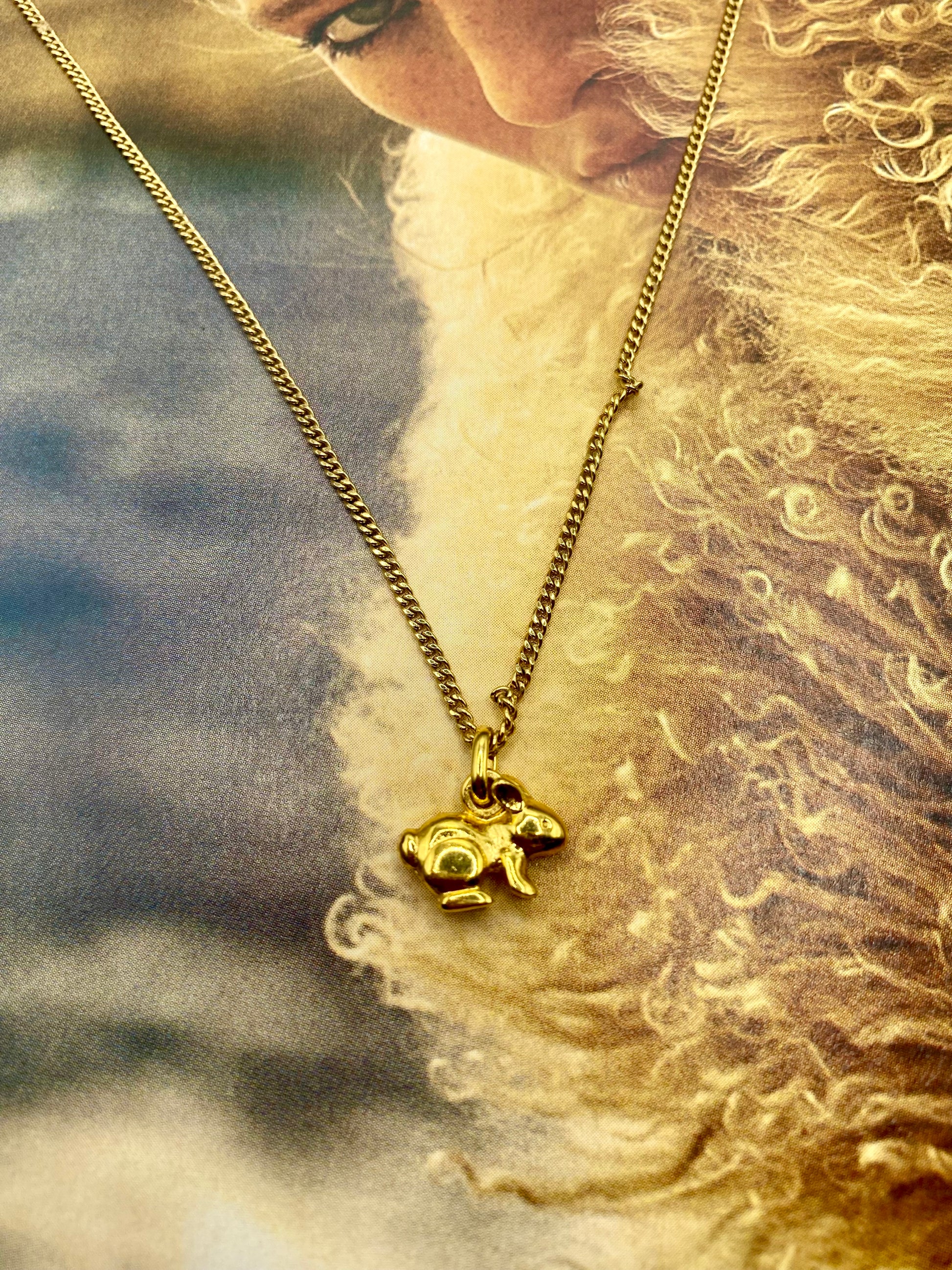 Adorable collier fait d’une chaîne et d’un petit pendentif lapin. Le plus mignon des bijoux!