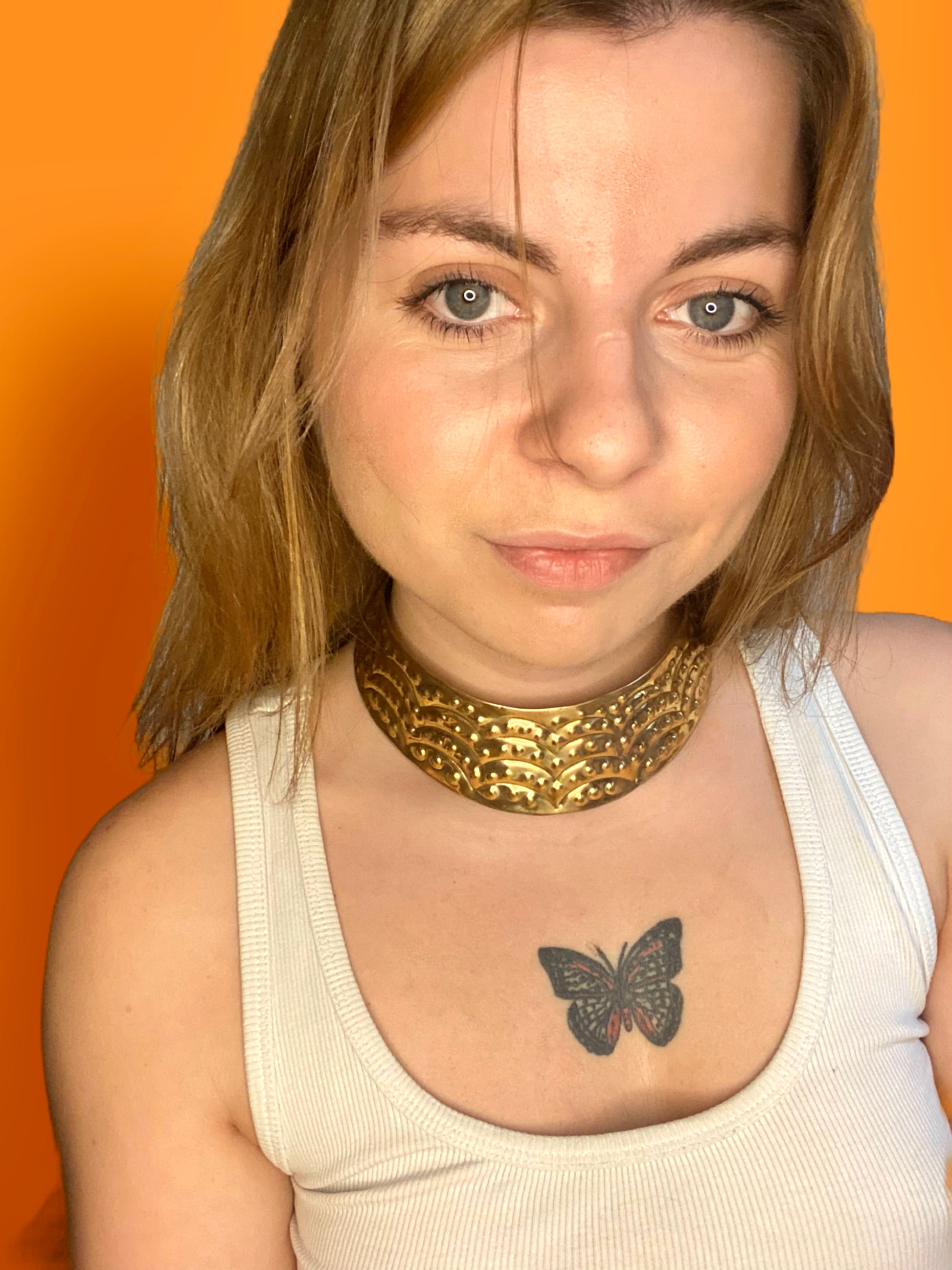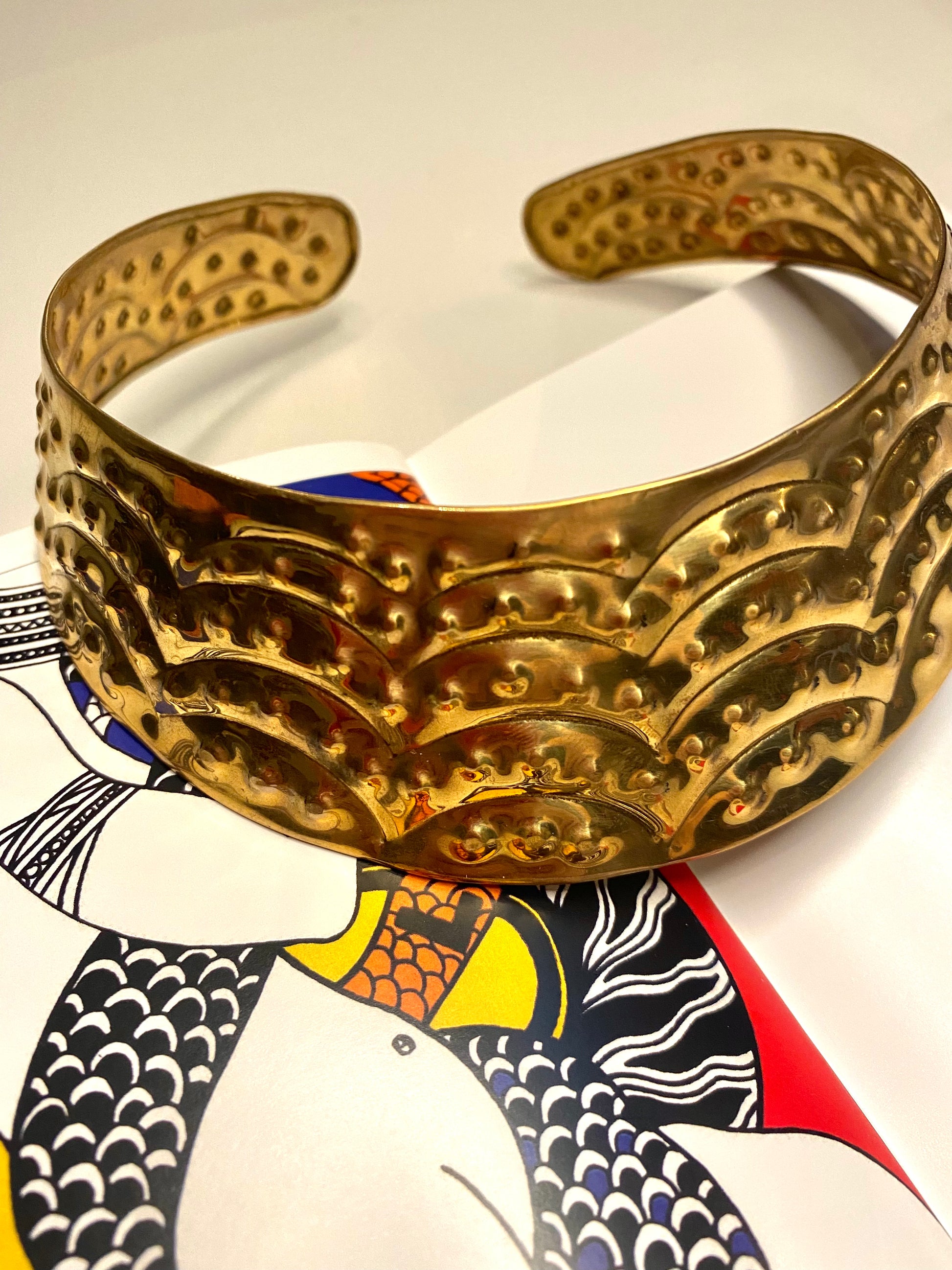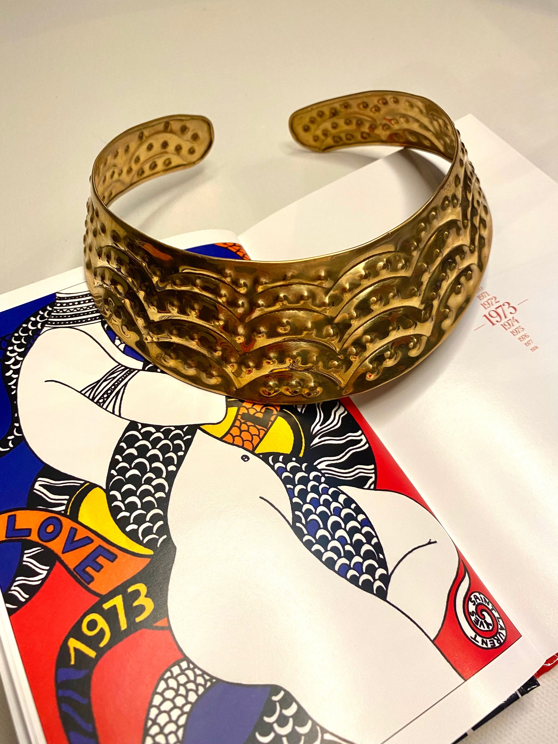 Ce sublime ras de cou est en acier doré, et extrêmement léger. Effet très élégant !