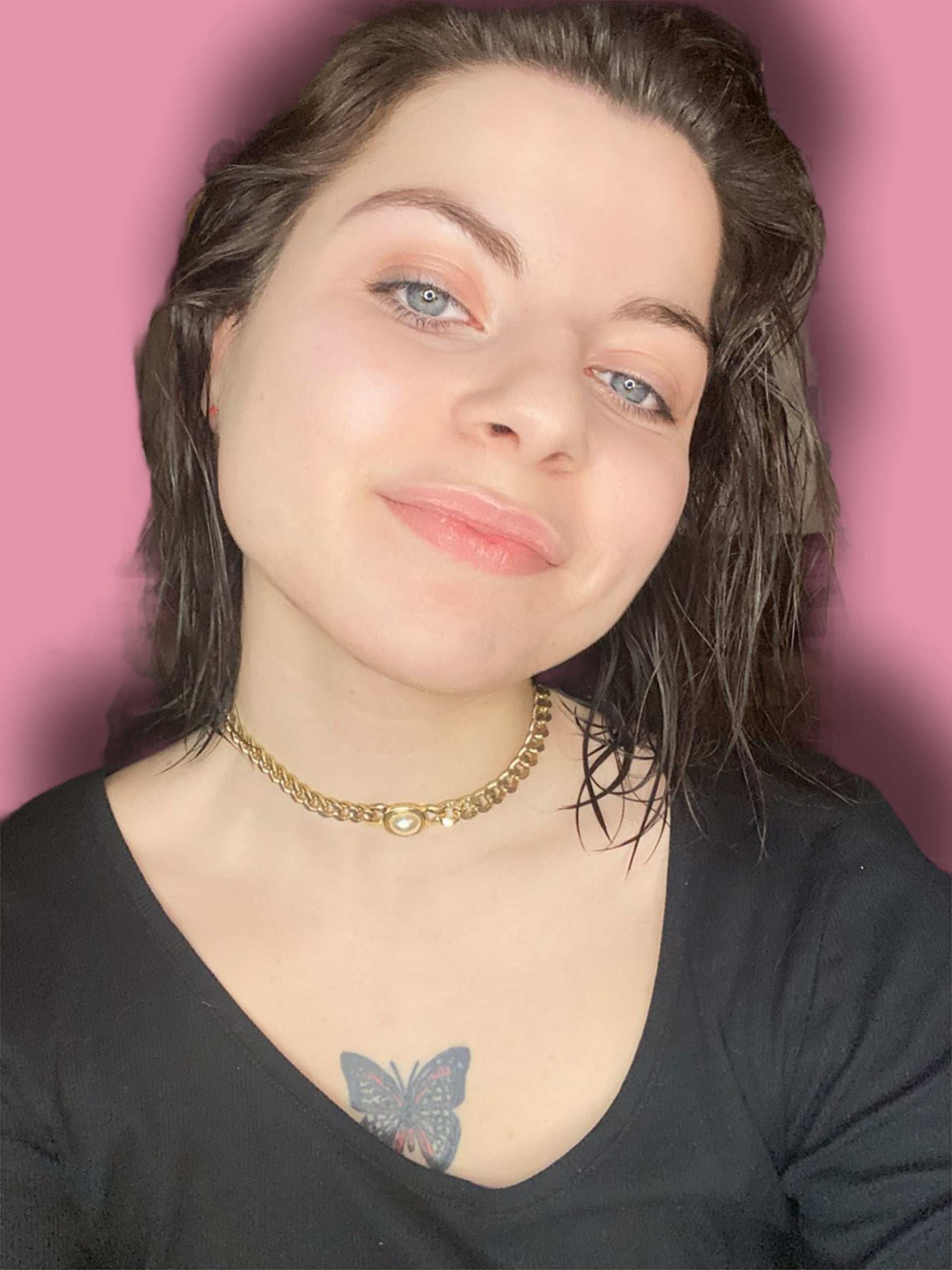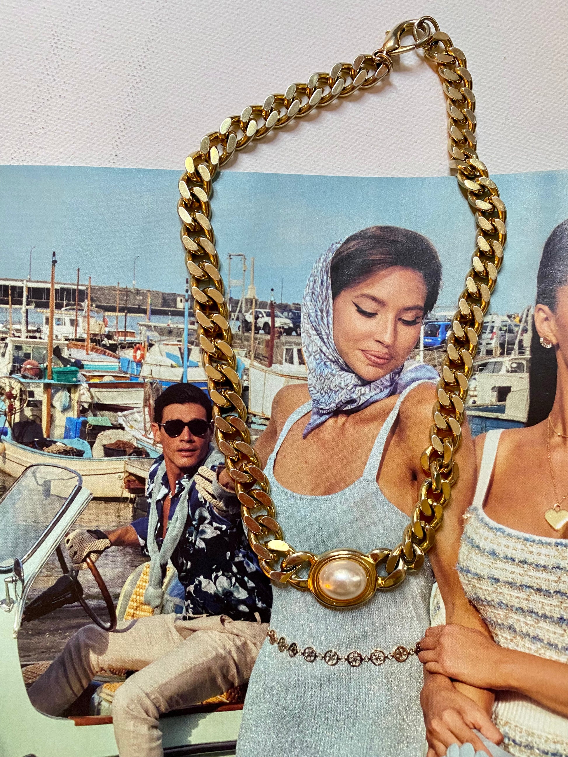 Ras de cou en chaîne gros maillons plaqué or avec une perlé minérale.