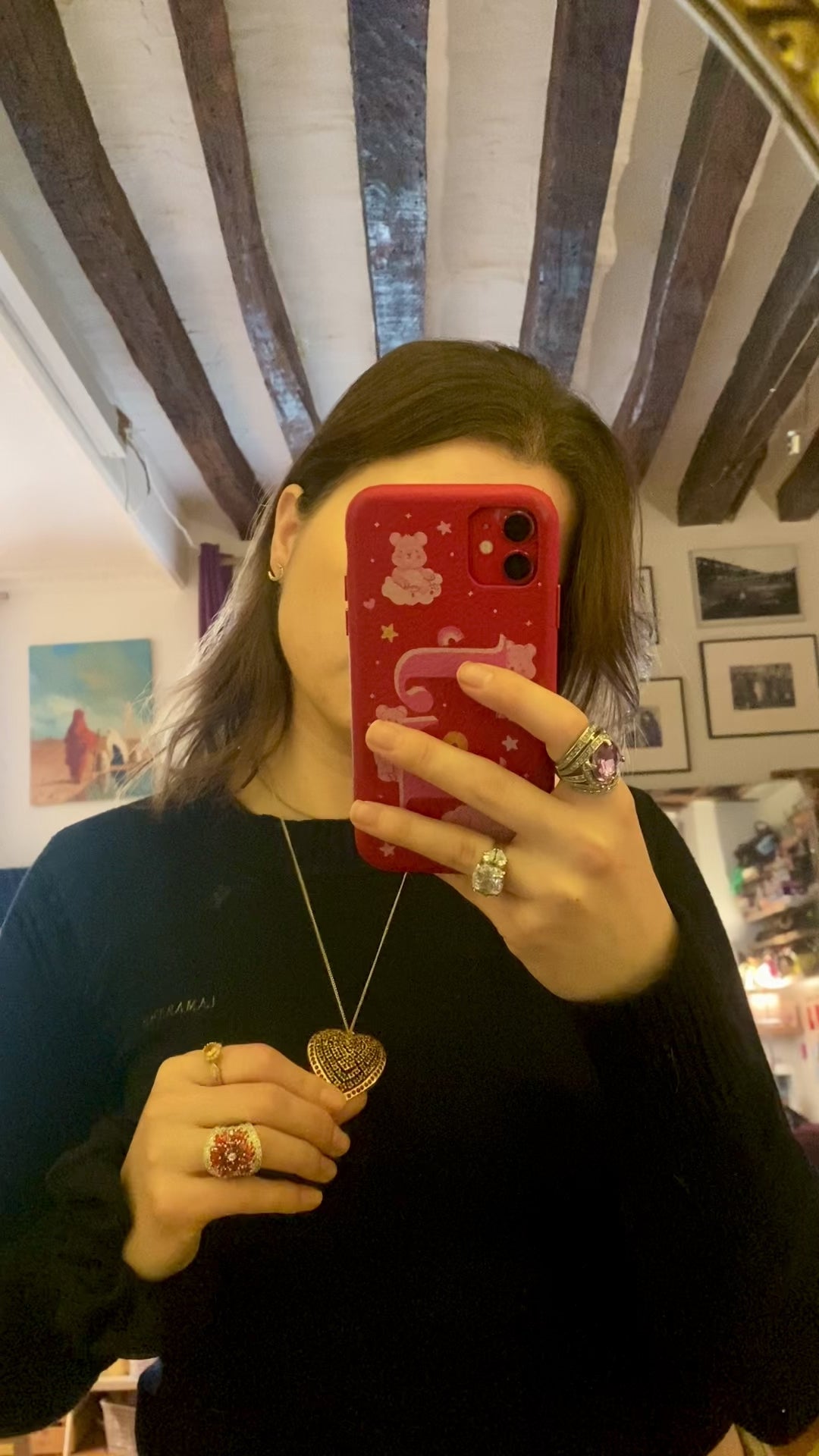 EN/ Red heart pendant in gold plated with many zirconiums. Perfect gift (even from you to you!) for Valentine’s day, it is so shiny !