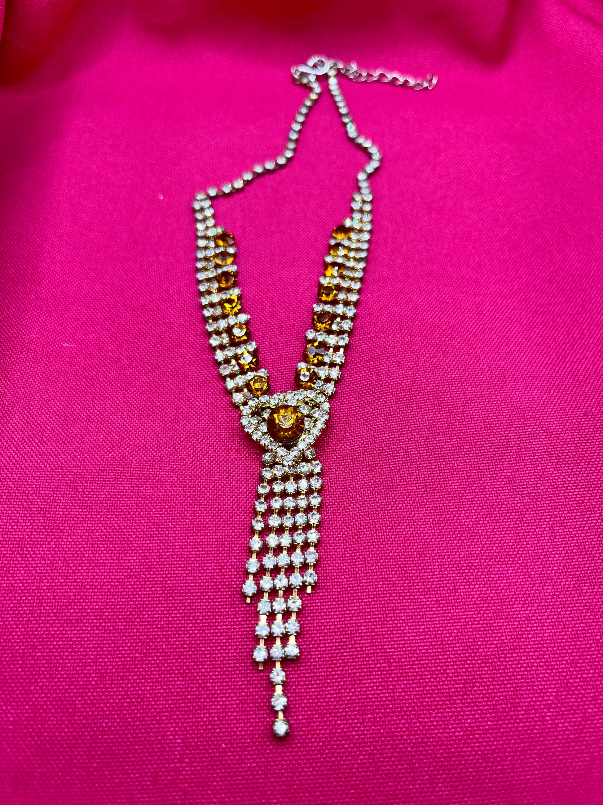 EN/ Very short necklace, ultra bright with its orange and white rhinestones. An ultra sexy and elegant piece.