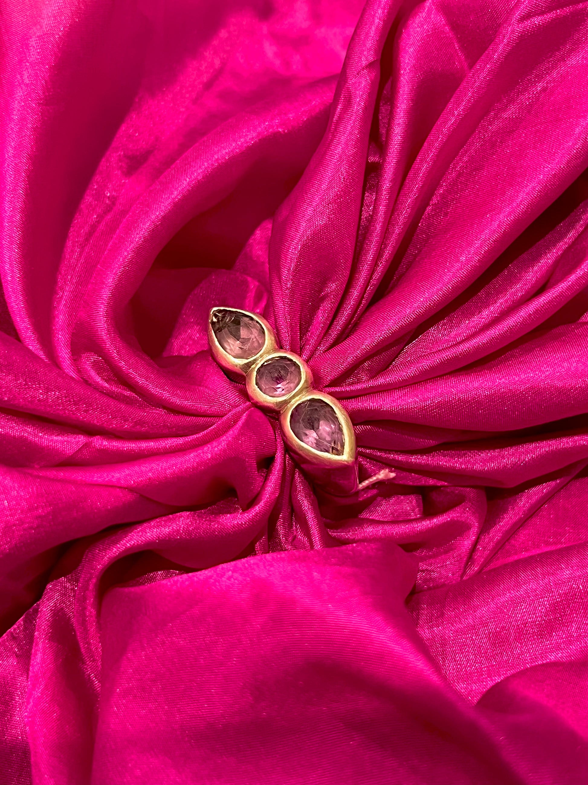 FR/ Très belle bague en argent 925, sertie de trois Améthyste violet rosé adorable qui renforce le côté vintage de cette pièce. Une pièce aussi forte que douce.