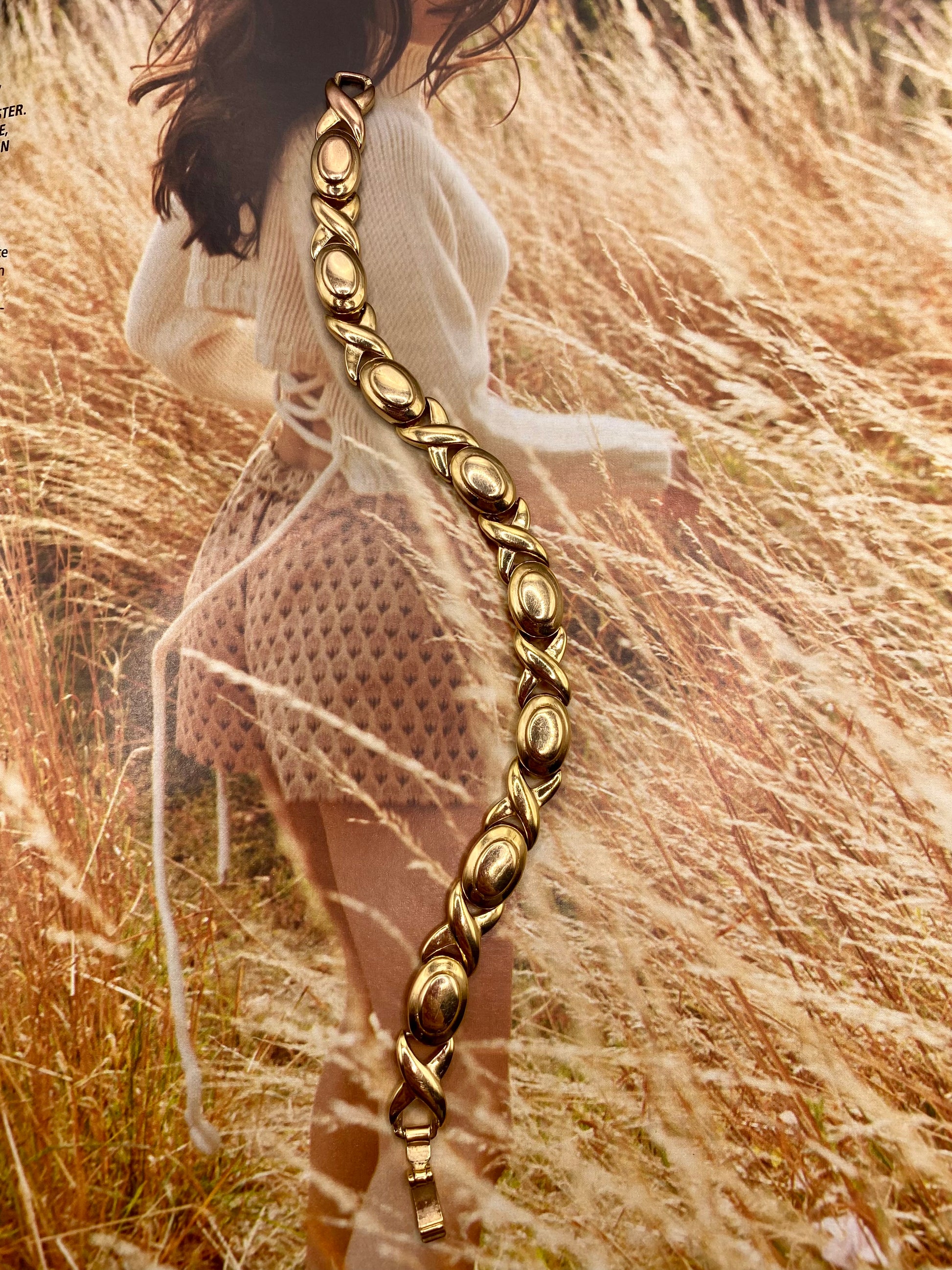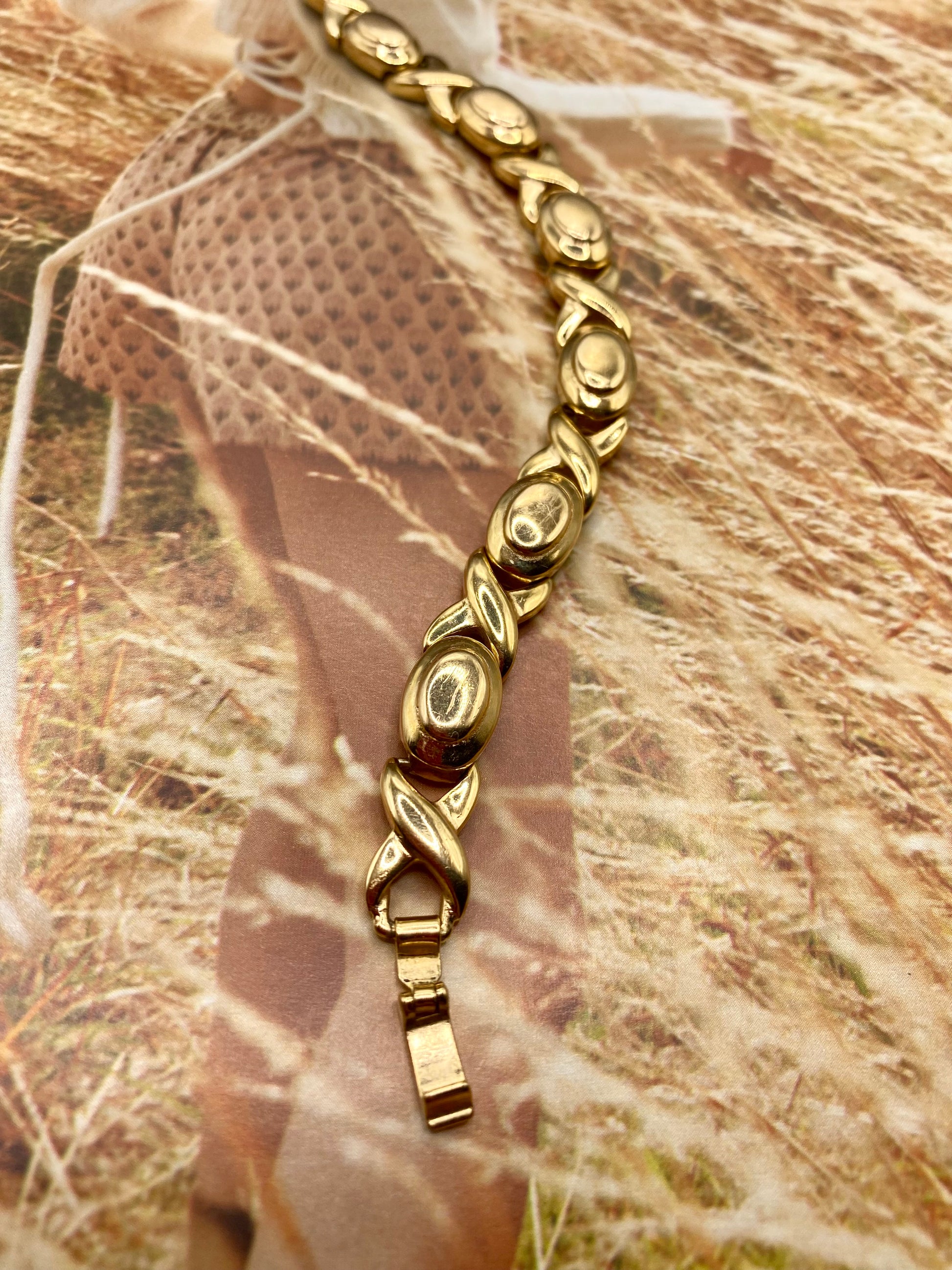 Bracelet à maillons en plaqué or, pièce vintage des années 80 qui sublime le poignet, une pièce intemporelle.