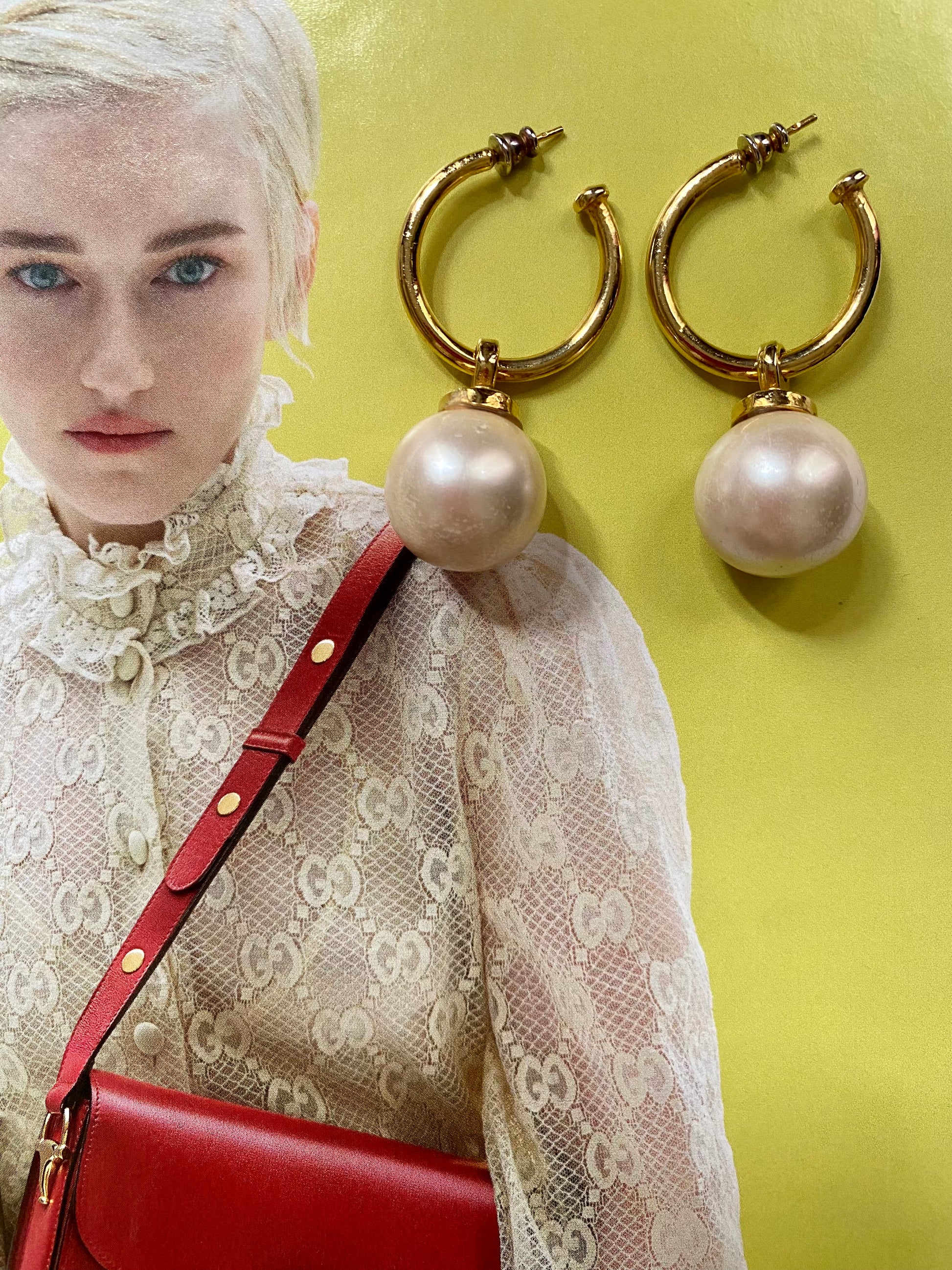 Créoles qui se porte de deux manières différentes, avec la perle de culture ou vous pouvez la retirer et les porter en tant que créoles tout simple. Quelques traces d’usures due au temps.