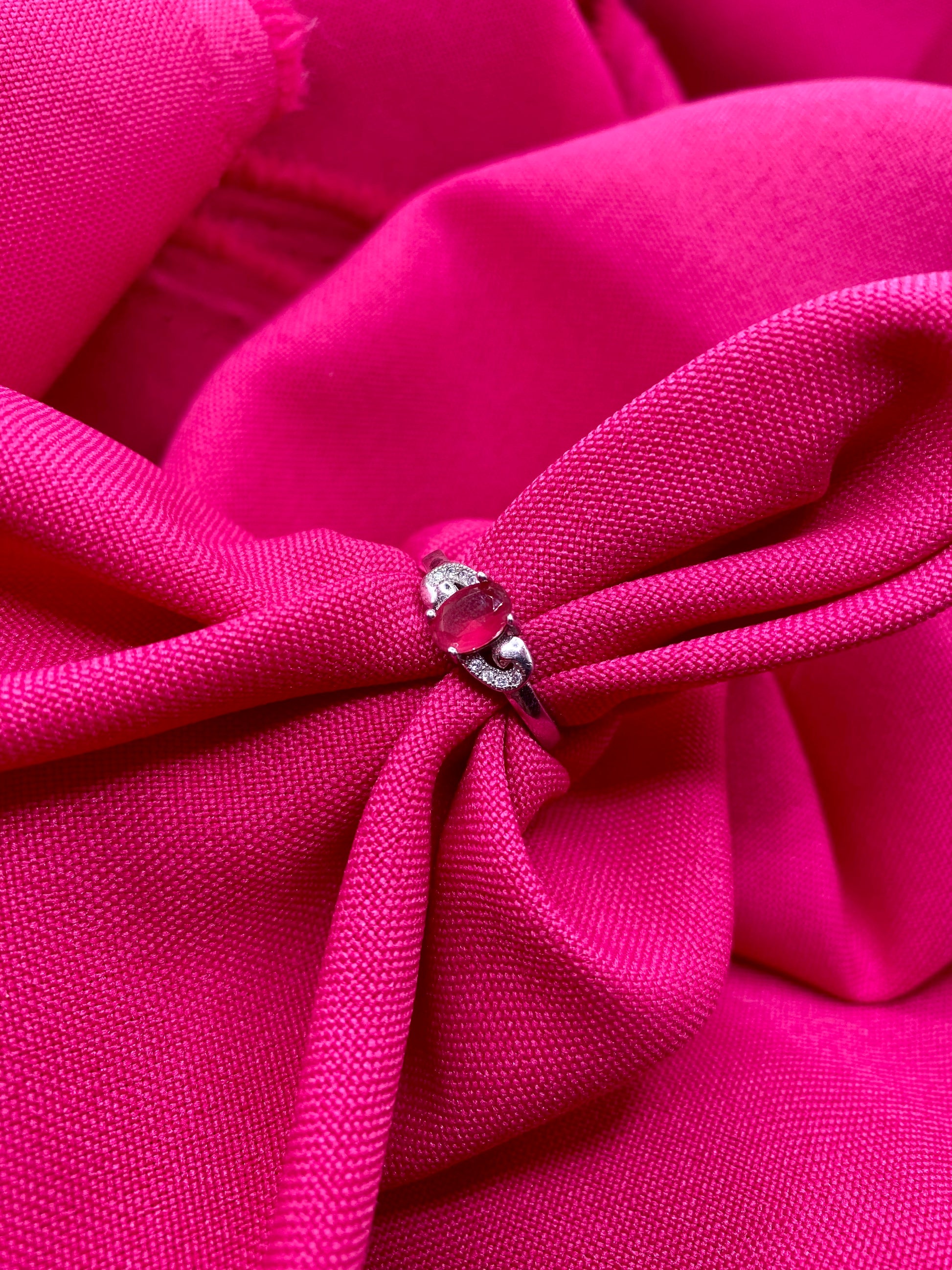 FR/ Bague en argent 925 sertie de zirconiums blanc et d’un joli cristal fuschia. Une pièce délicate et élégante pour tous les jours.