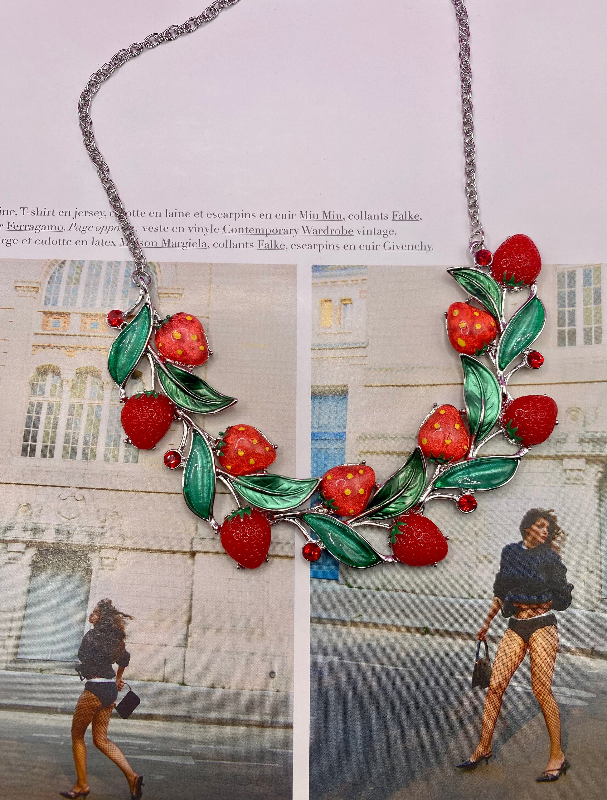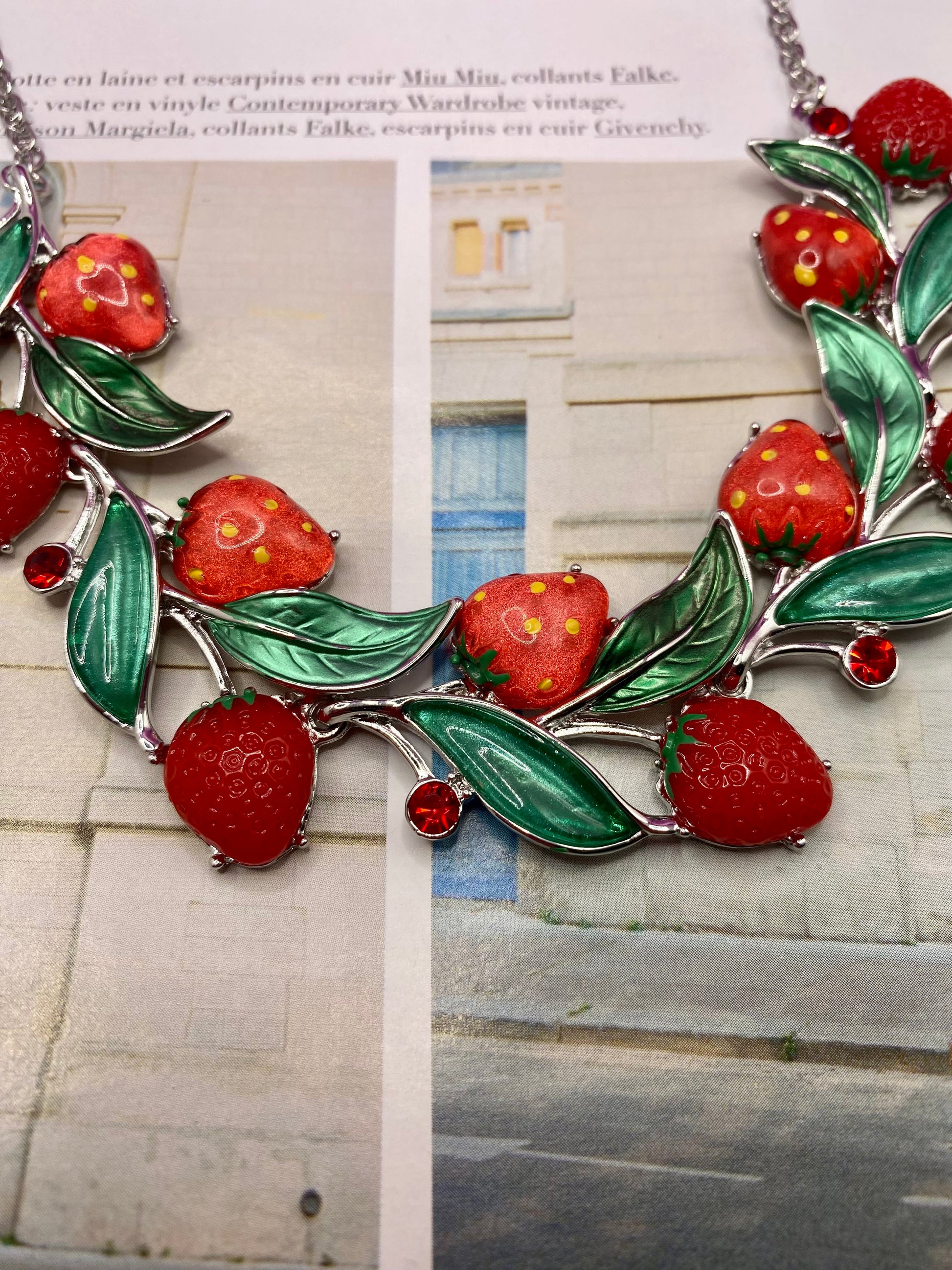 EN/ Necklace in silver and resin, with red rhinestones. I fell in love with this strawberry necklace, an original piece that we can't find much. The design is meticulous, the quality intact.