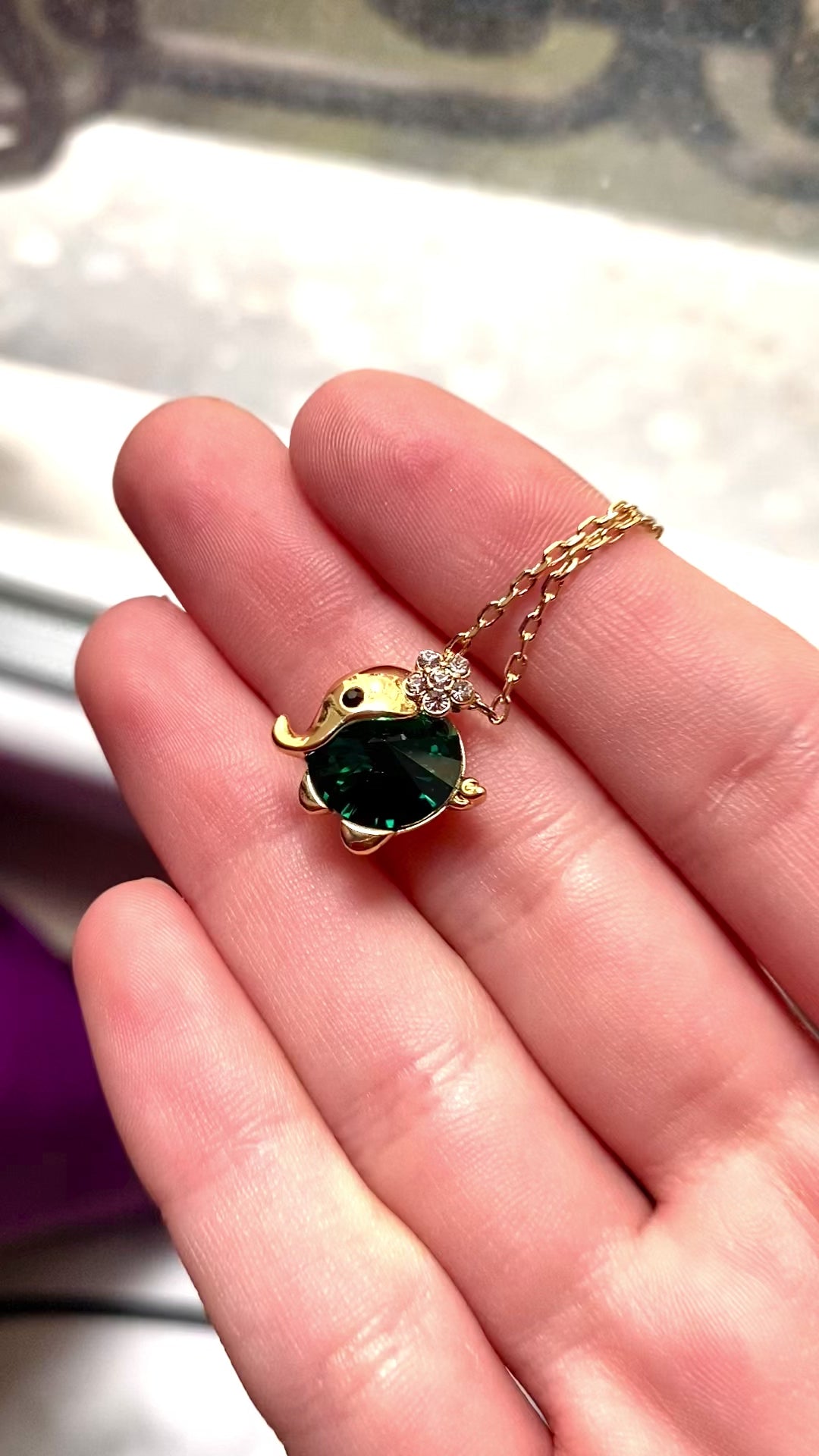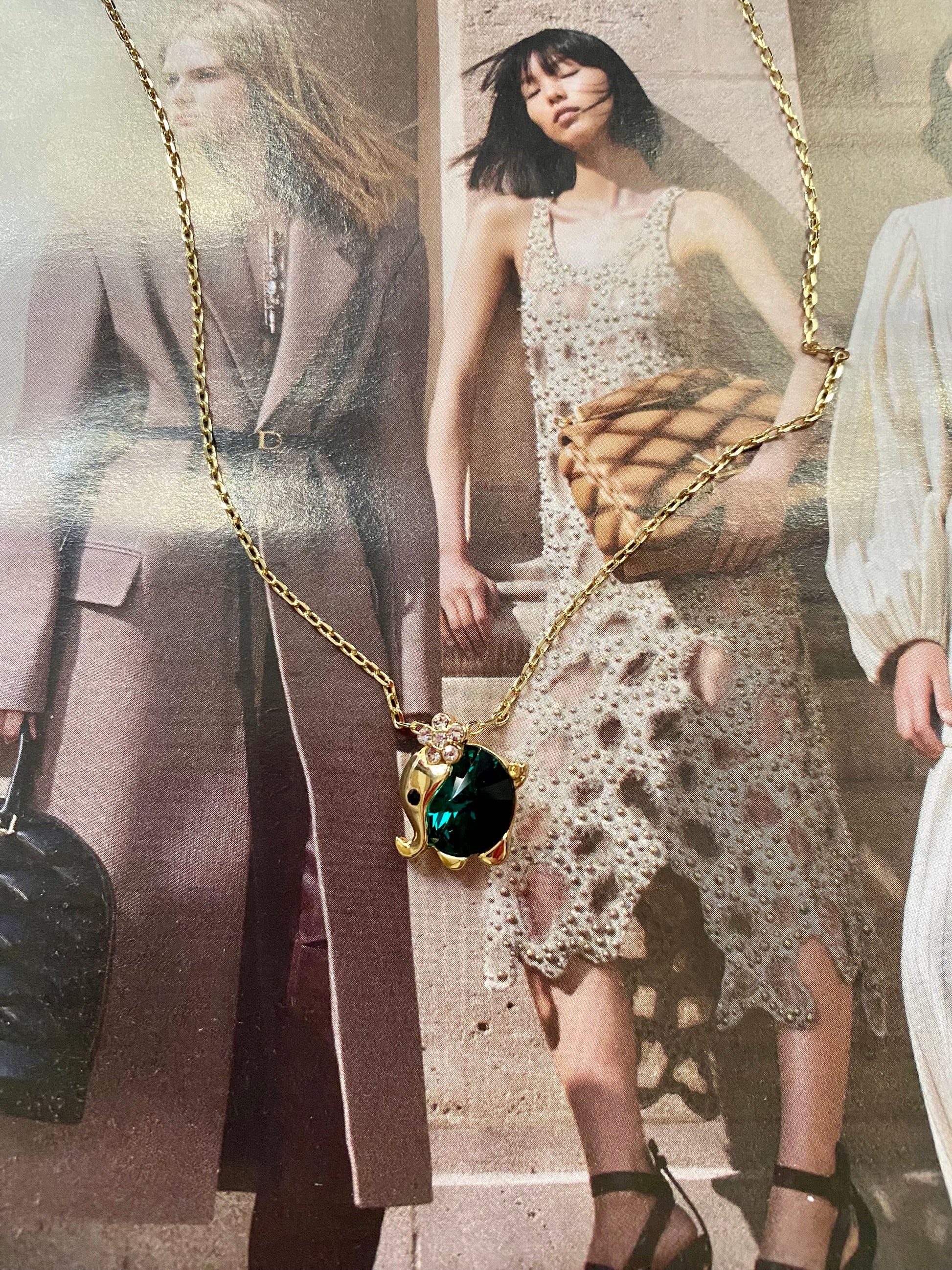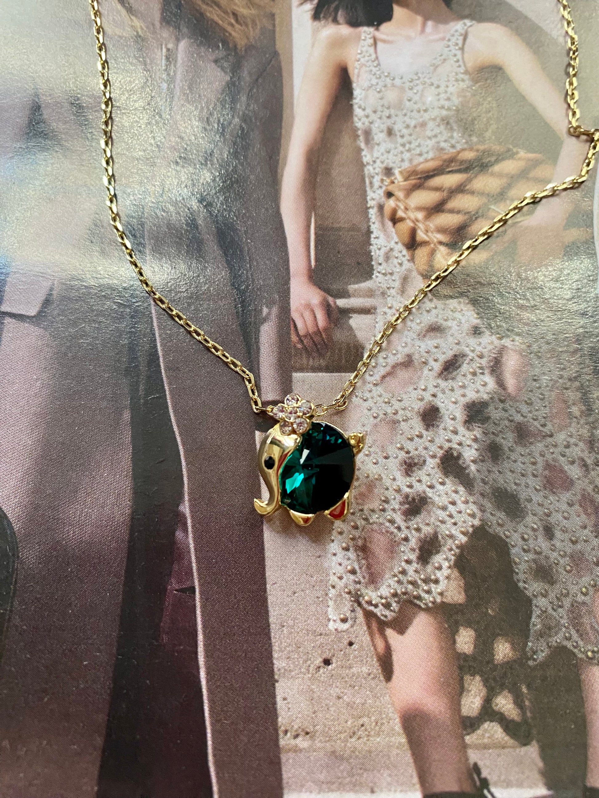 Chaîne et pendentif plaqué or serti de cristaux Swarovski.
