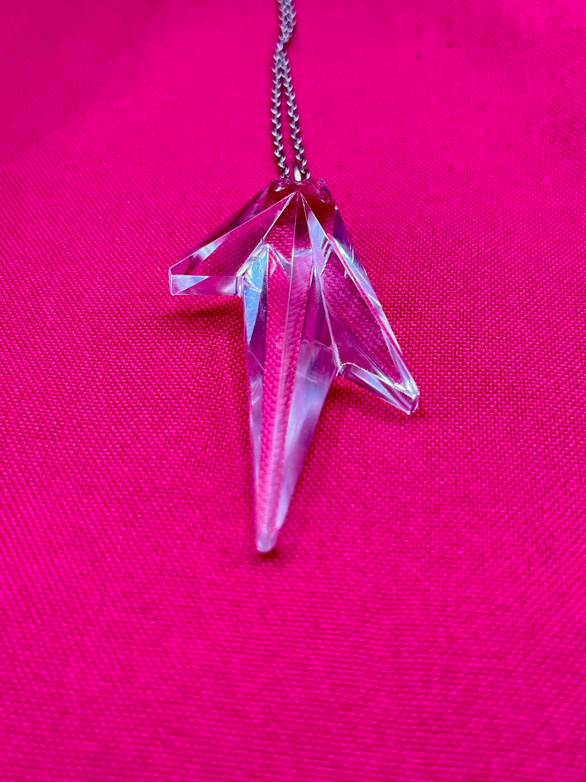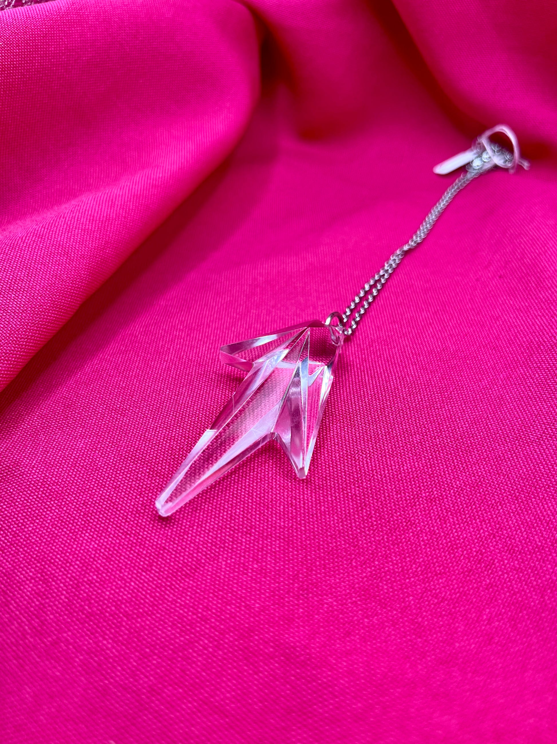 FR/ Collier avec un incroyable pendentif en cristal transparent signé Thierry Mugler avec la forme iconique de la maison. Une pièce lumineuse et précieuse.