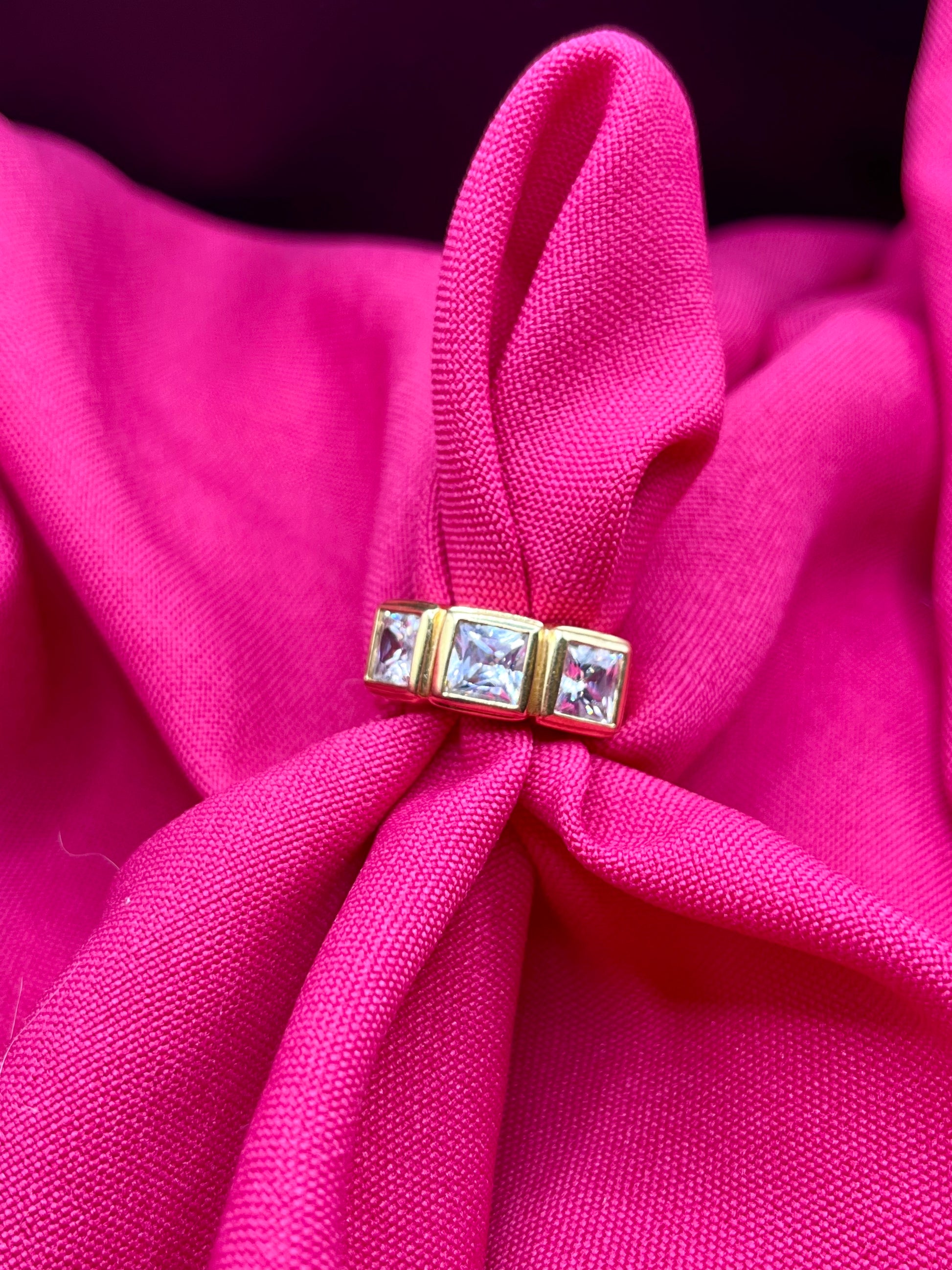 FR/ Pièce simple et forte à avoir dans sa collection de bijoux. Un beau plaqué or avec une incrustation de trois cristaux blancs. Épurée et chic.