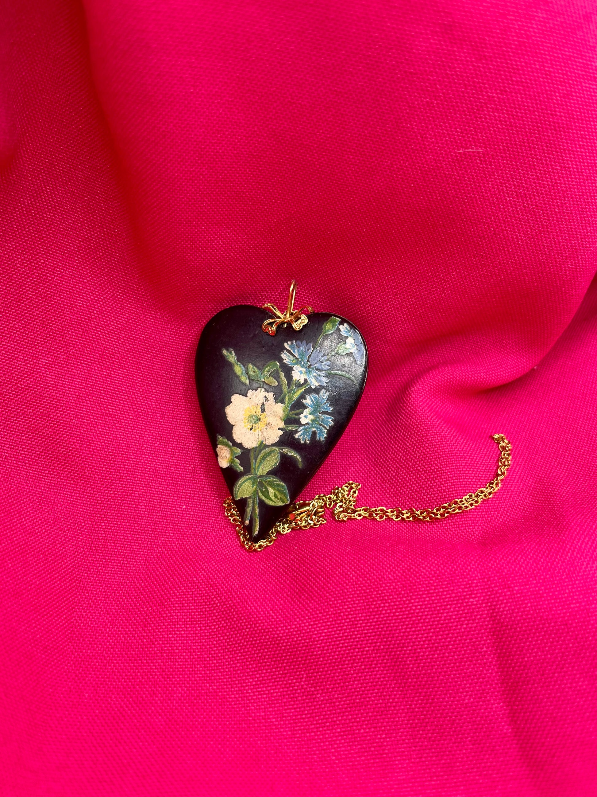 FR/ Sublime pendentif en bois poser sur un soutien en plastique. Le bois est peint à la main, pièce unique et délicate. Le pendentif est envoyé avec une chaîne en acier inoxydable couleur or mais sera sublime aussi porter en choker. N’hésitez pas à demander un ruban pour le porter de cette manière aussi dans la partie note au moment du paiement ❤️